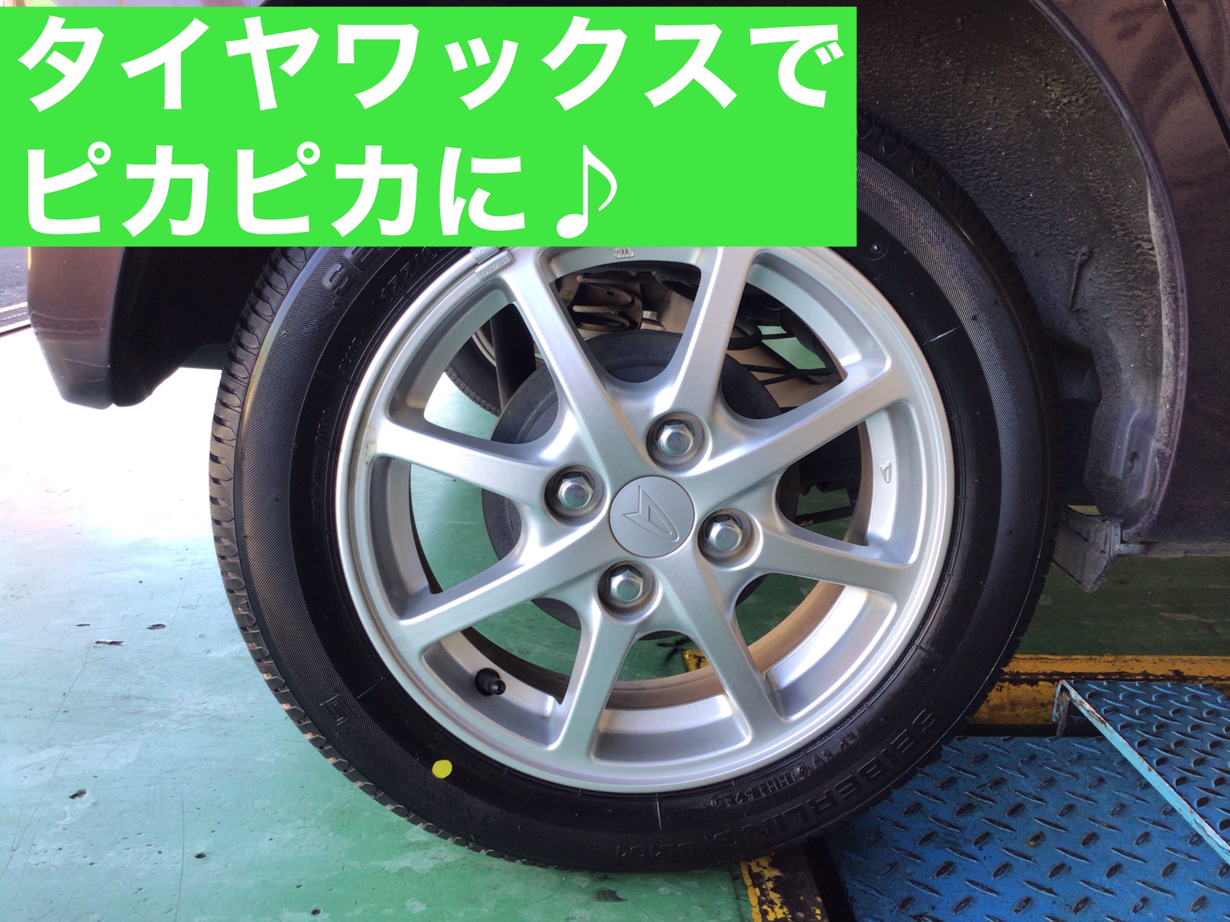 タイヤワックスを塗って