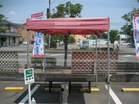 この日差しの強すぎで、喫煙コーナーのテントが