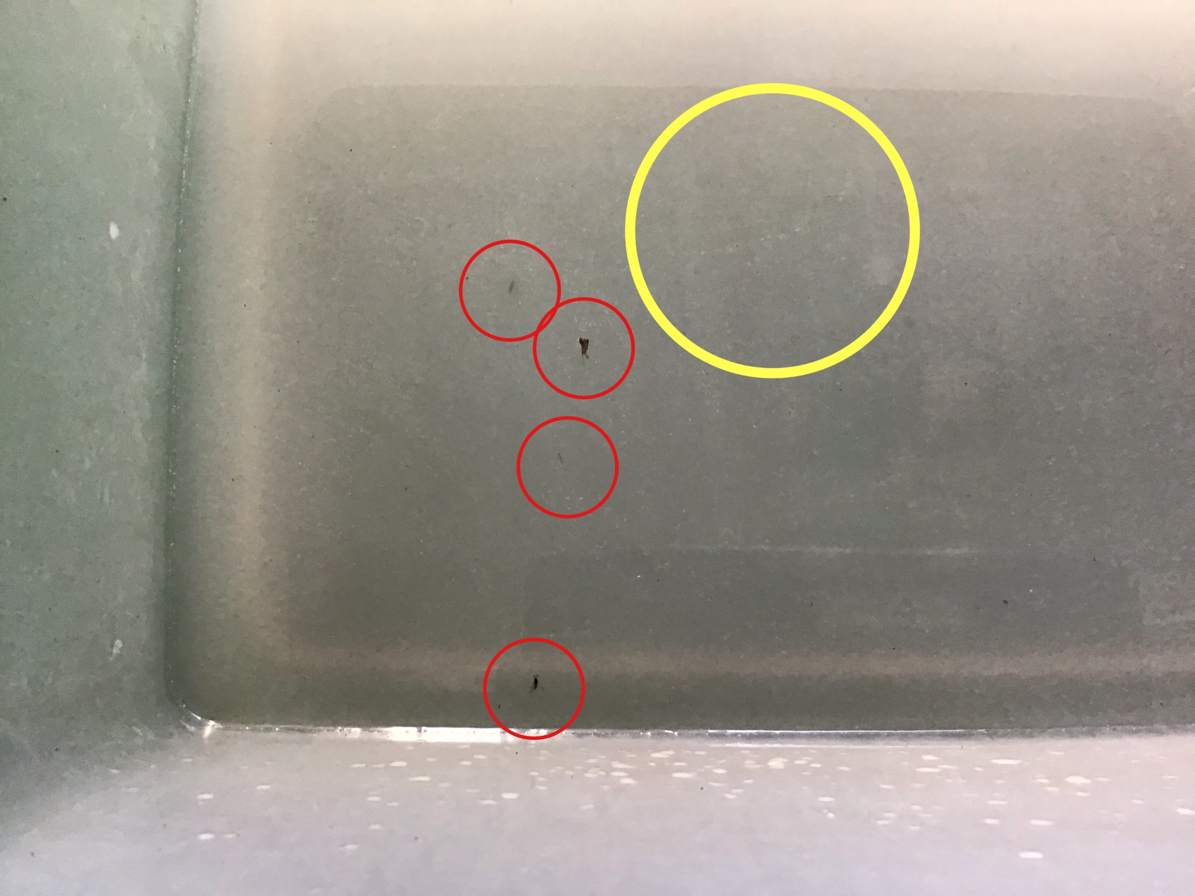 虫さんの死骸やドロッとした汚れが浮いています。。。