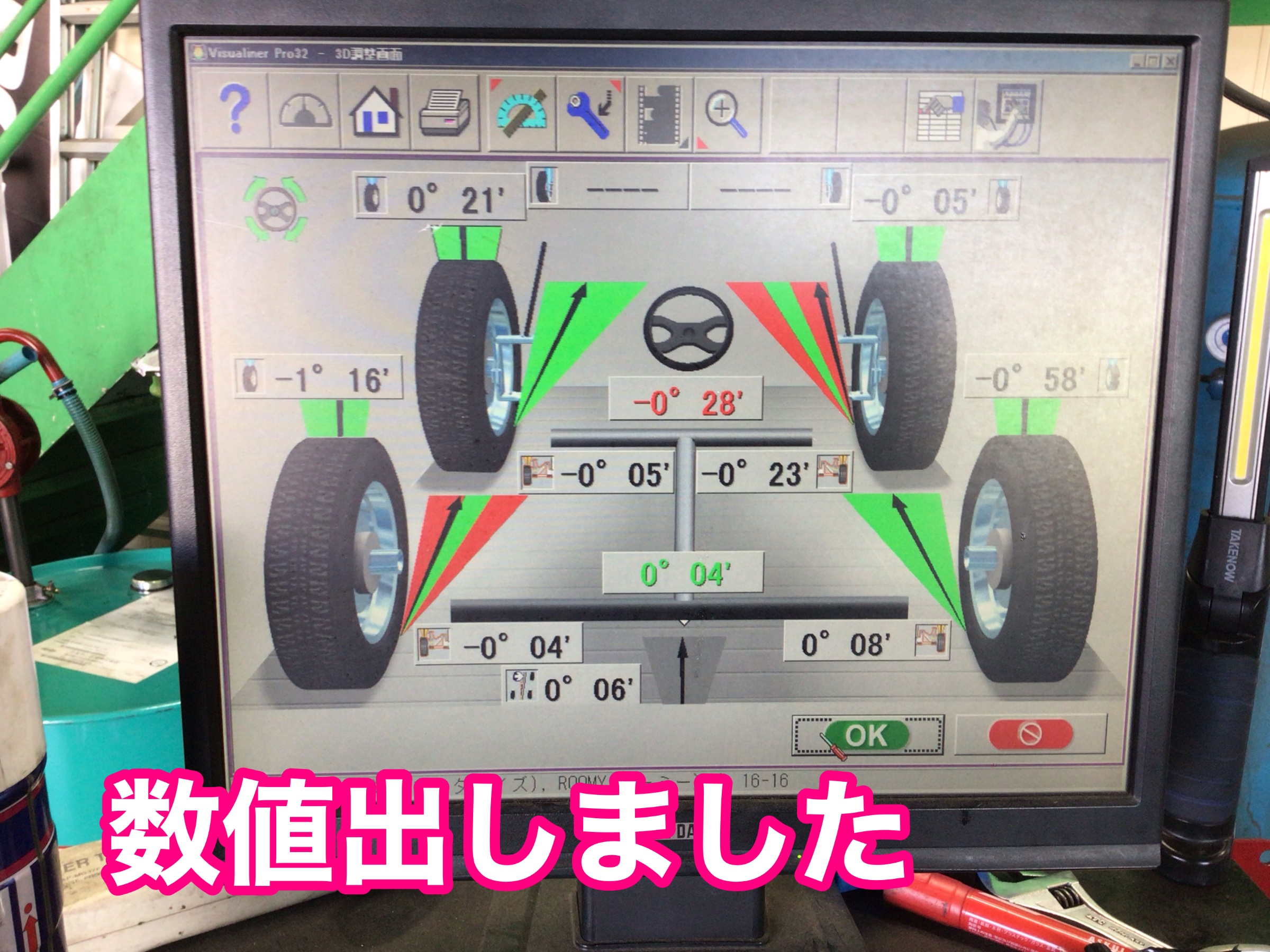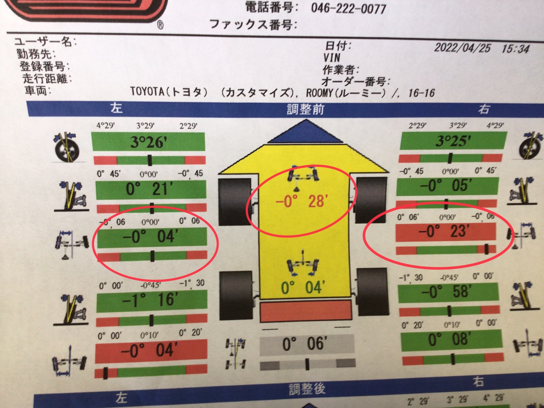 ルーミーはフロントトー2か所調整ですので