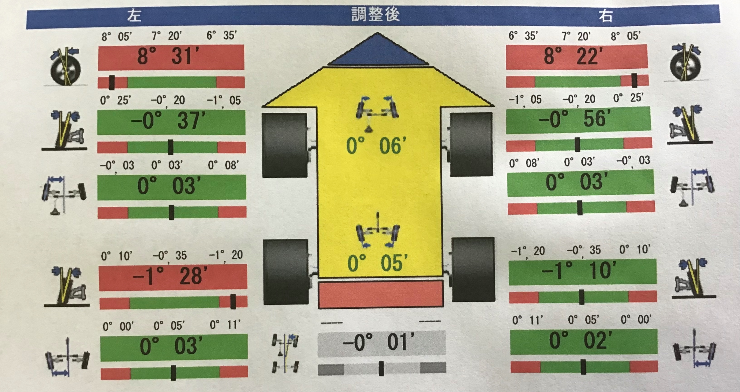 リヤは基準値内で試乗しつつ、微調整していきます。