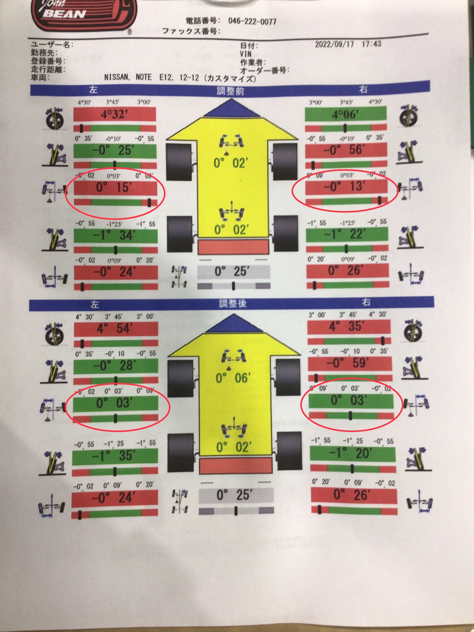 ニッサン ノートはフロントトー2箇所を調整できる構造になっています‼️