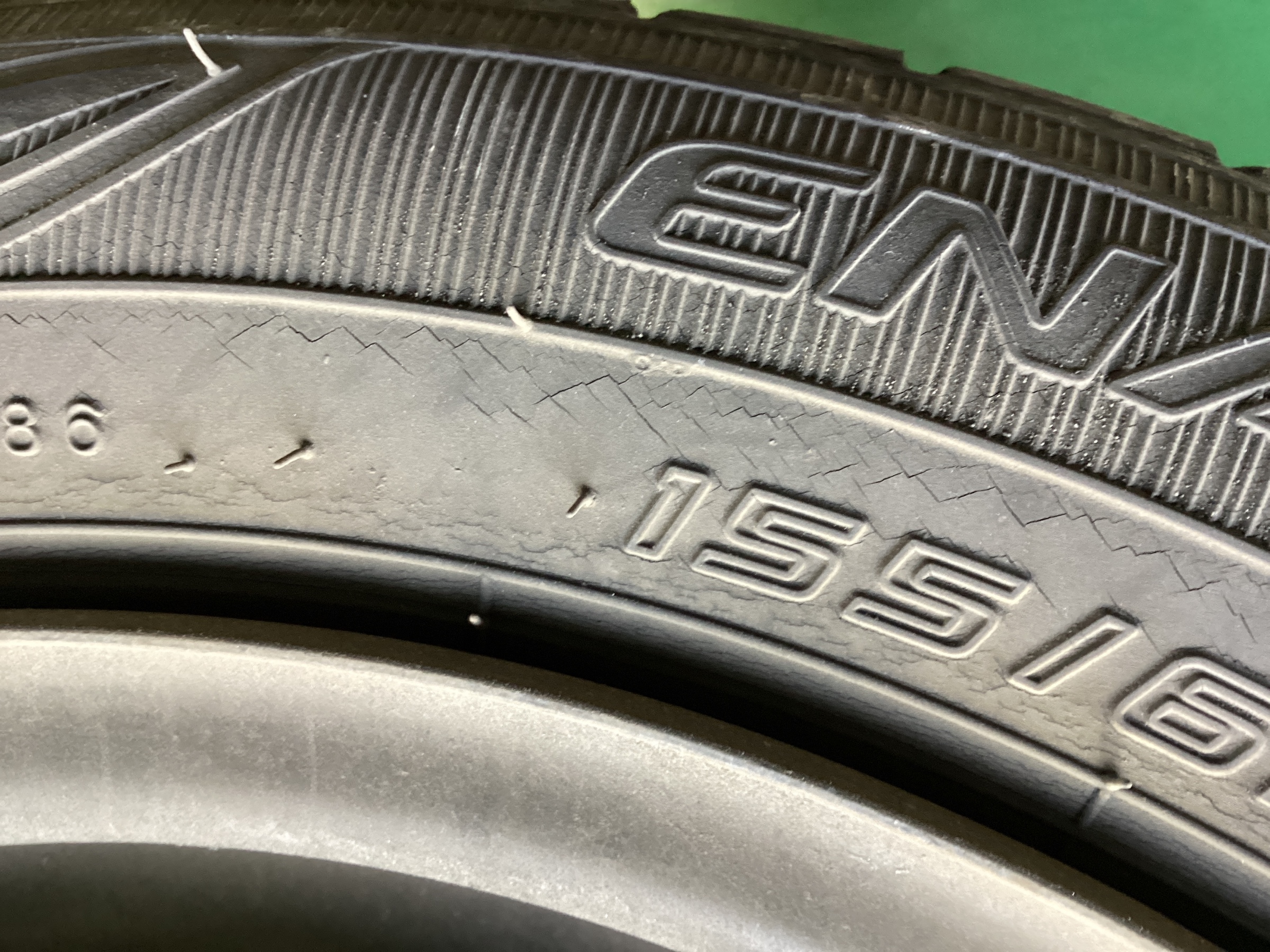 タイヤを点検すると 新車から使っているようで