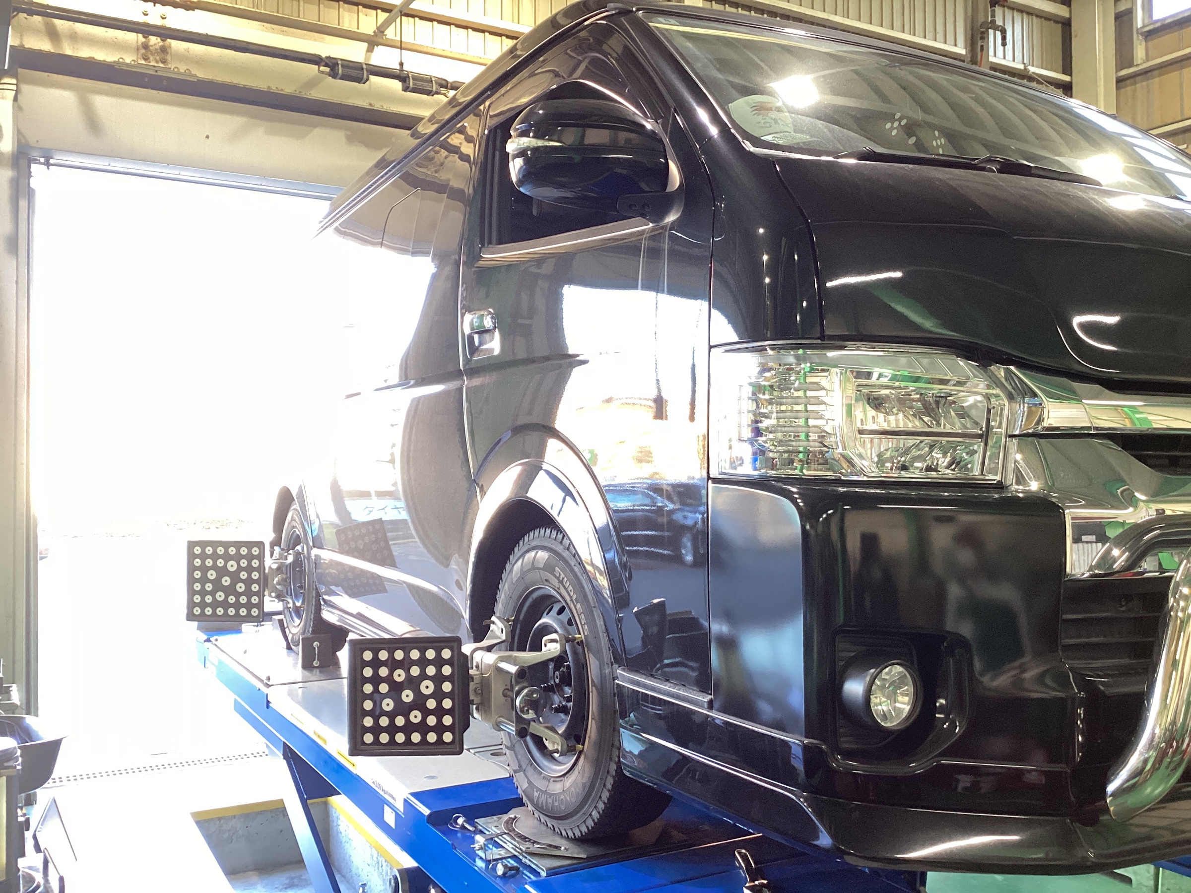 4輪アライメントもお任せ!ハイエースアライメント調整です!