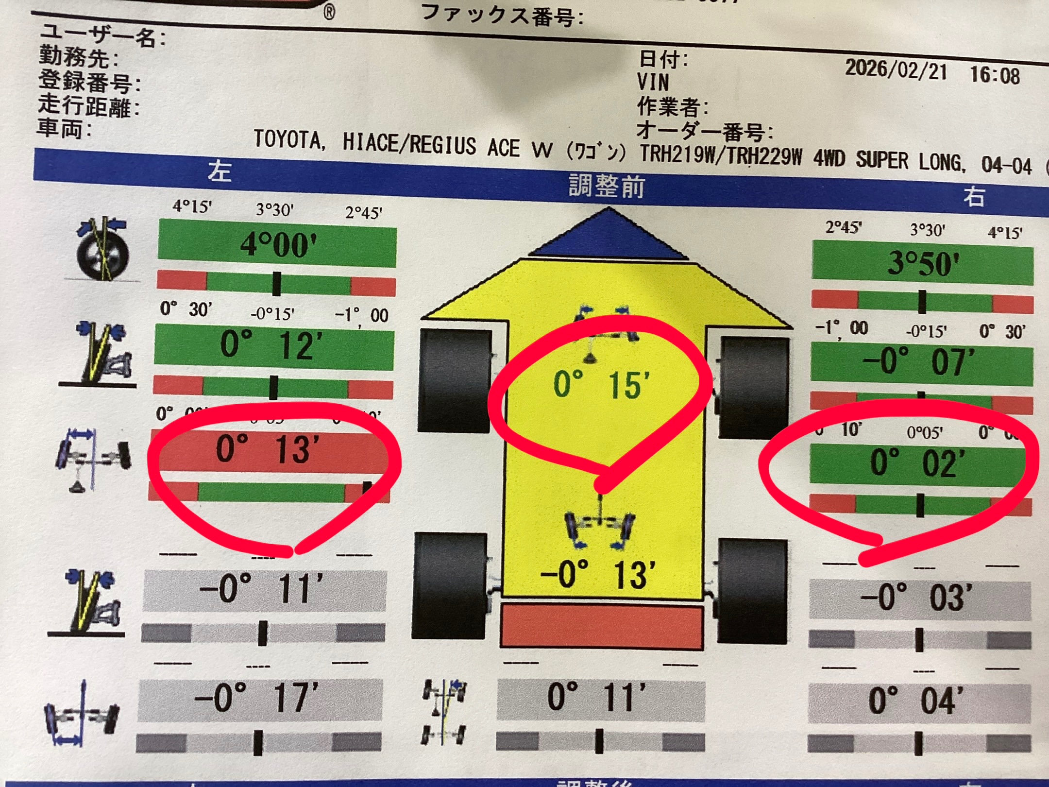 ただ、今回は キャスター、キャンバーが綺麗な状態でしたので