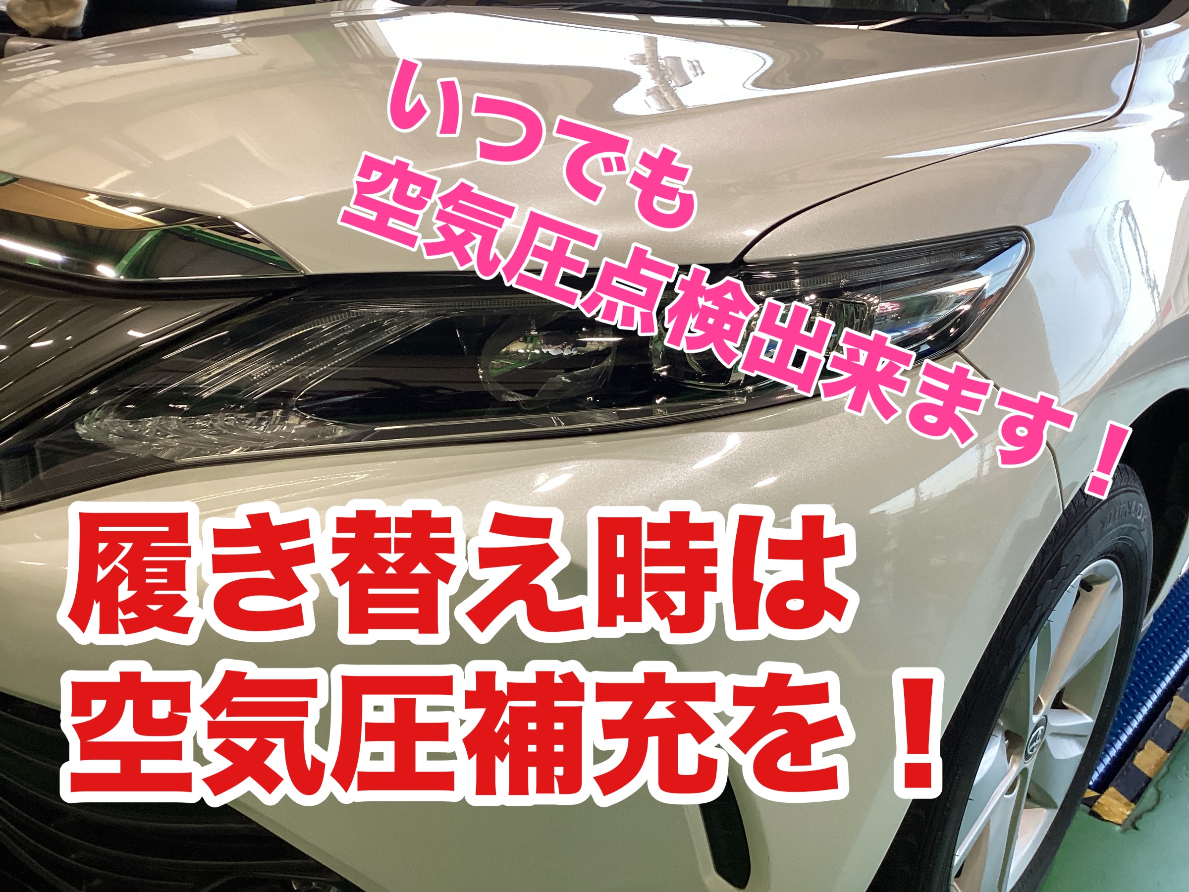 お出かけ前&履き替え後の 空気圧補充、点検 いつでもお越しください♪