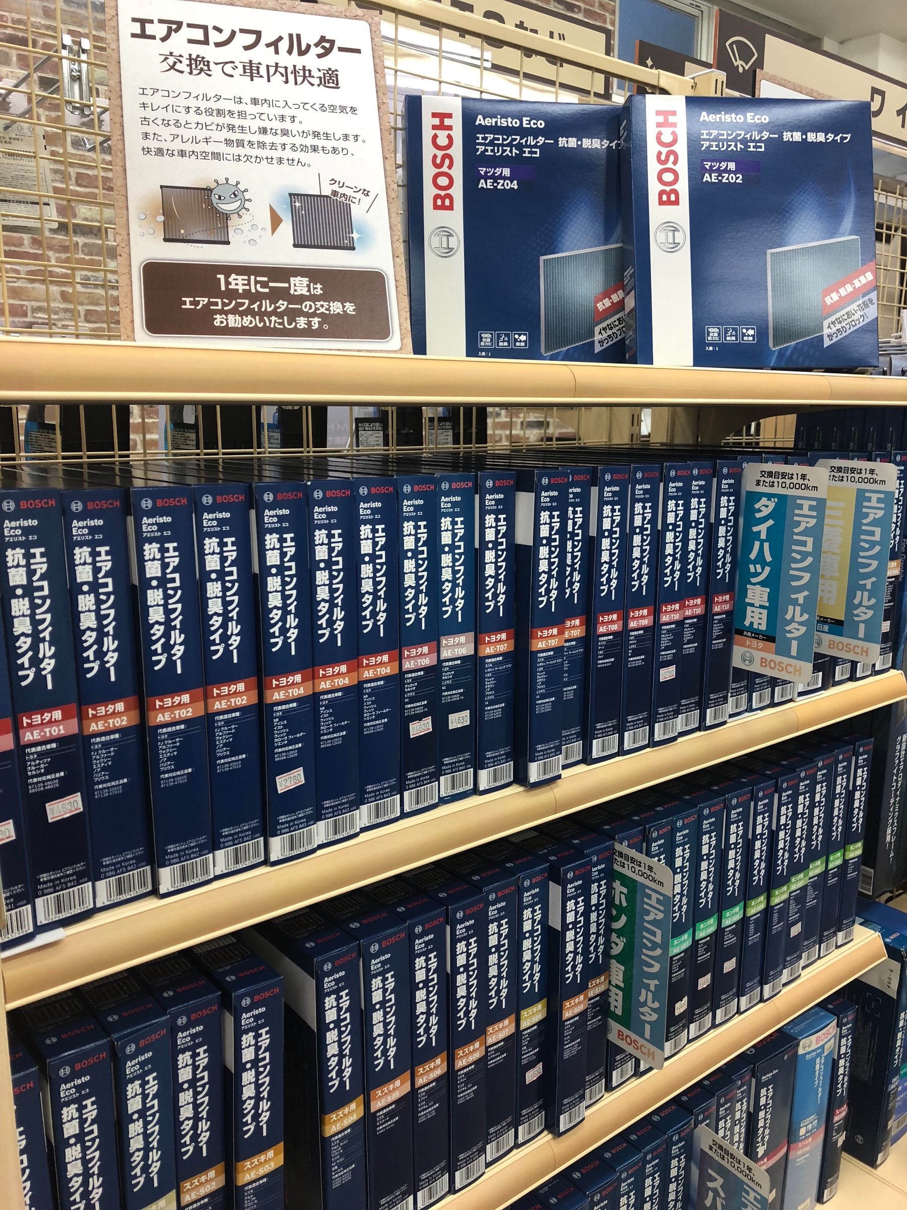 なお当店でご用意しているのは「BOSCHのアエリストエアコンフィルター」というものなのですが、かなりの高機能商品なのにお値段もおさえめでコスパ抜群です!