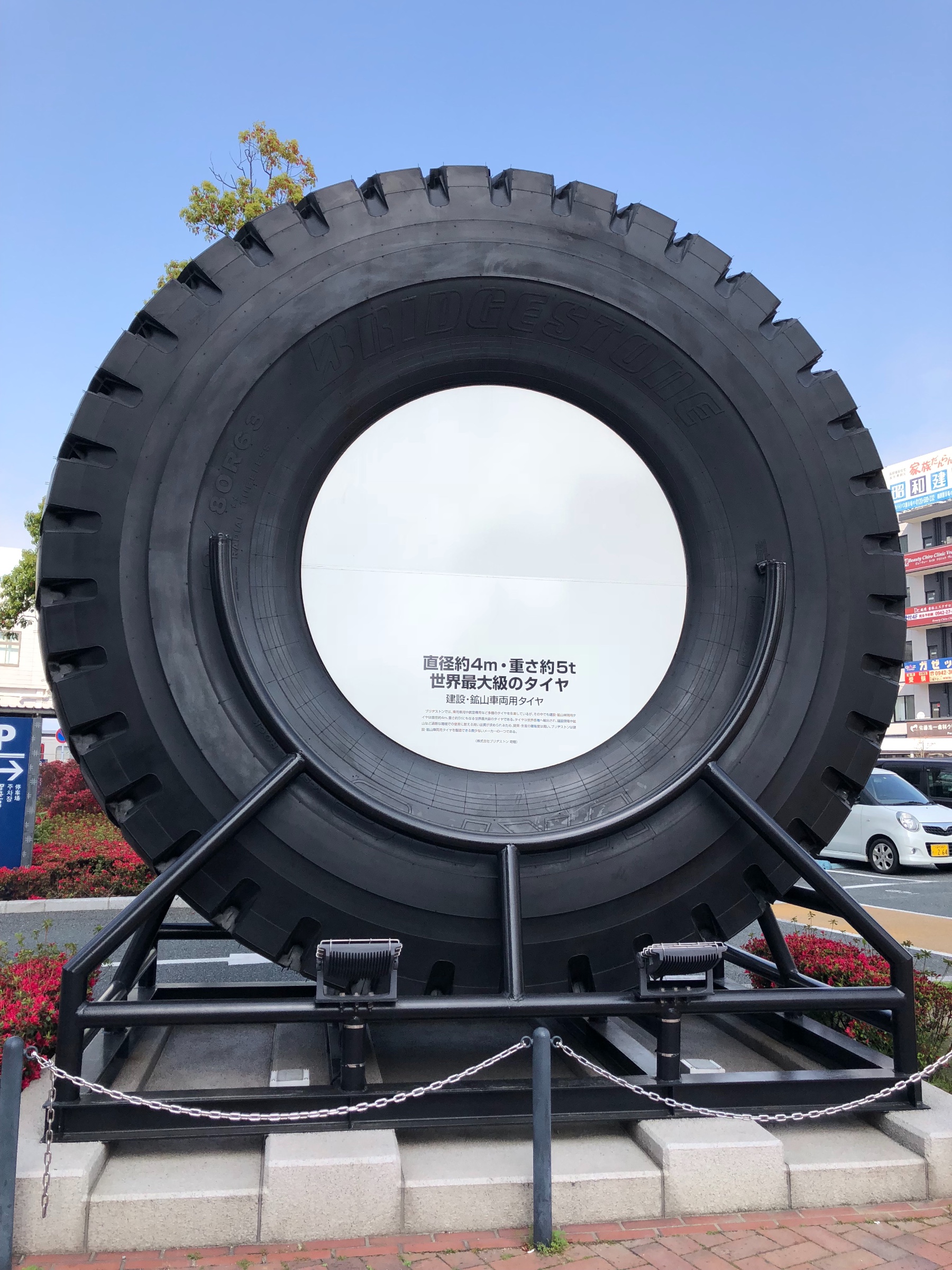福岡県の久留米駅を降りるとまずはこんな大きなタイヤがお出迎え!