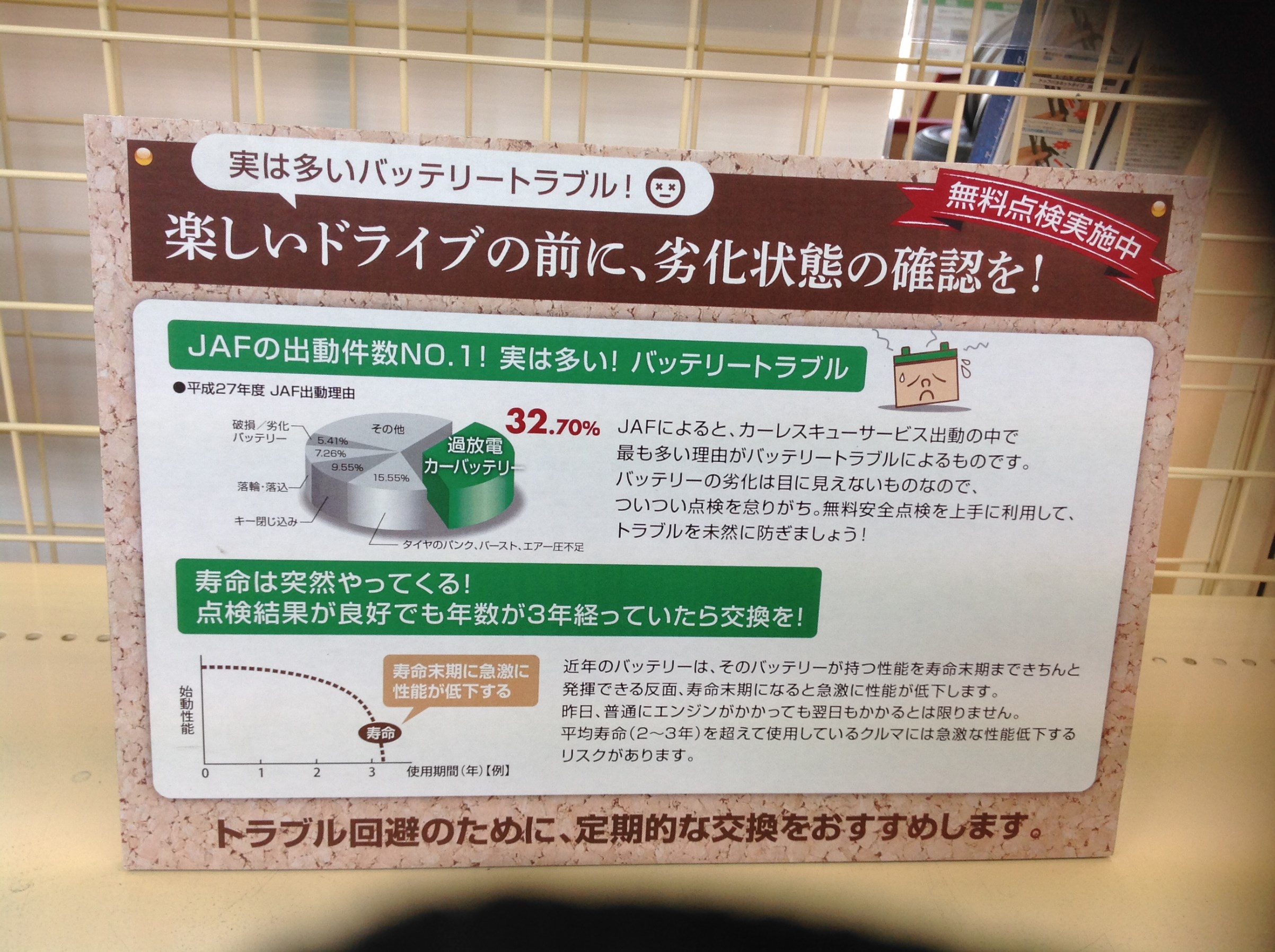 当店ですと無料で点検させていただいておりますのでお気軽にお越し下さい(*^_^*)