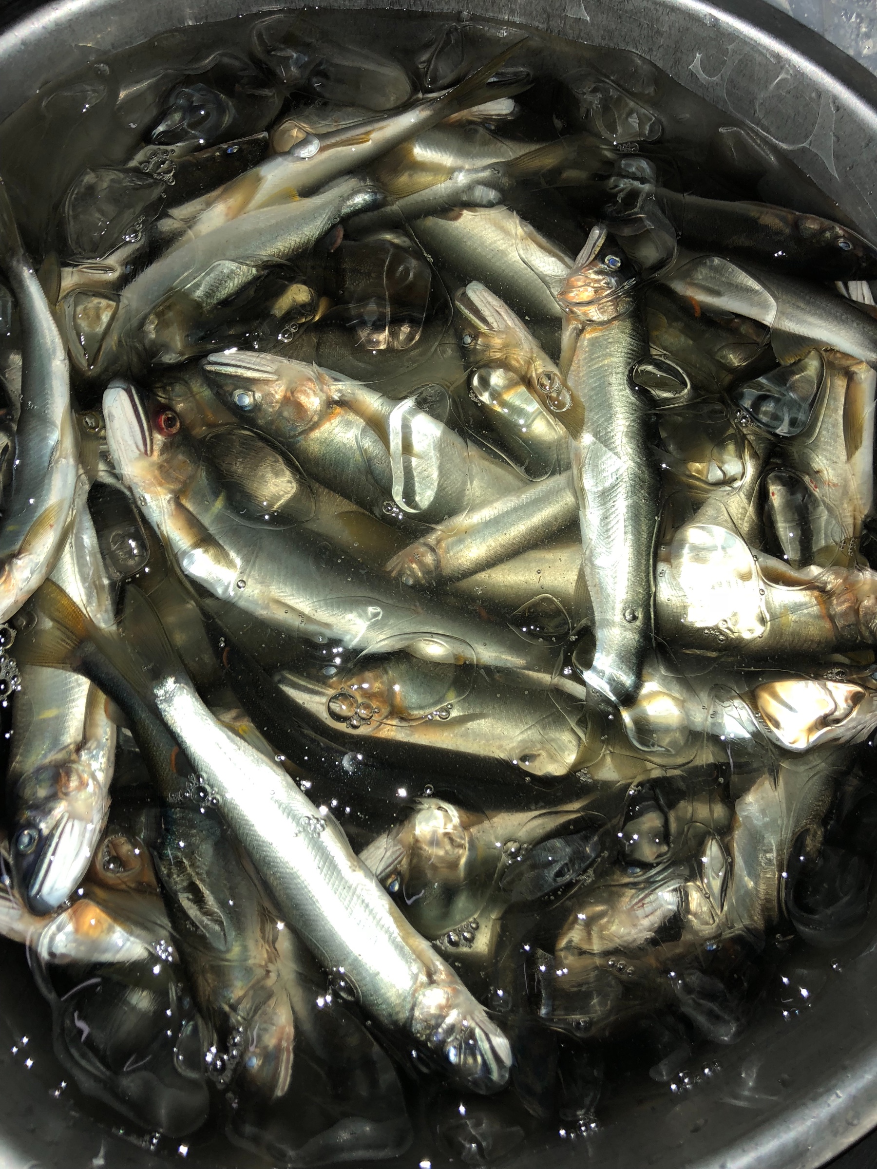 鮎釣は川の中に入って釣りをすることが多いので、天気が良くて暑いのですが一日外で釣りをしていても足を川の冷たい水で常に冷やしているのでとっても気持ちよかったですよ~
