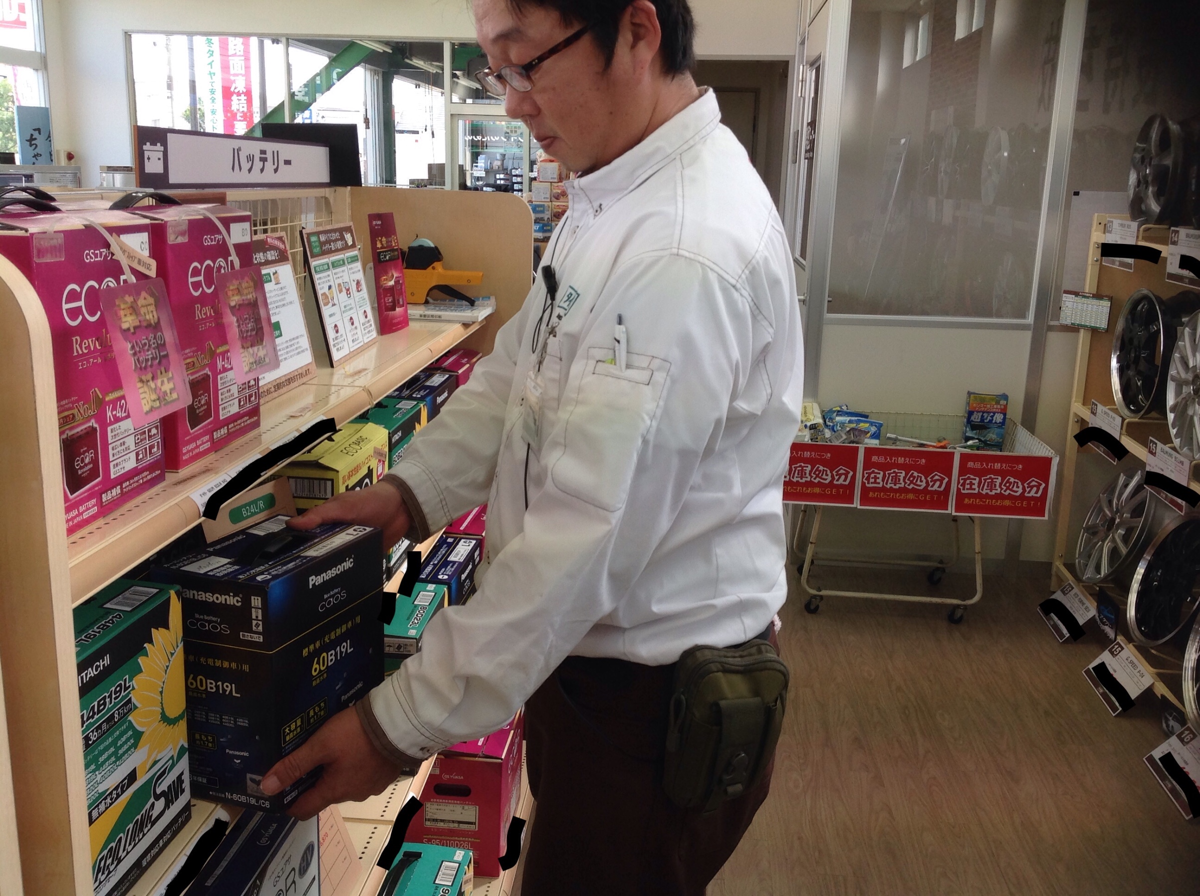 バッテリー担当 藤本スタッフも気合いいれてバッテリーの入荷をしておりますの写真(*^ω^*)