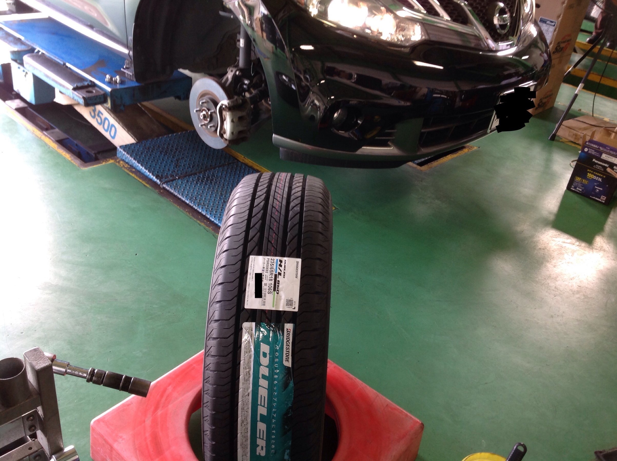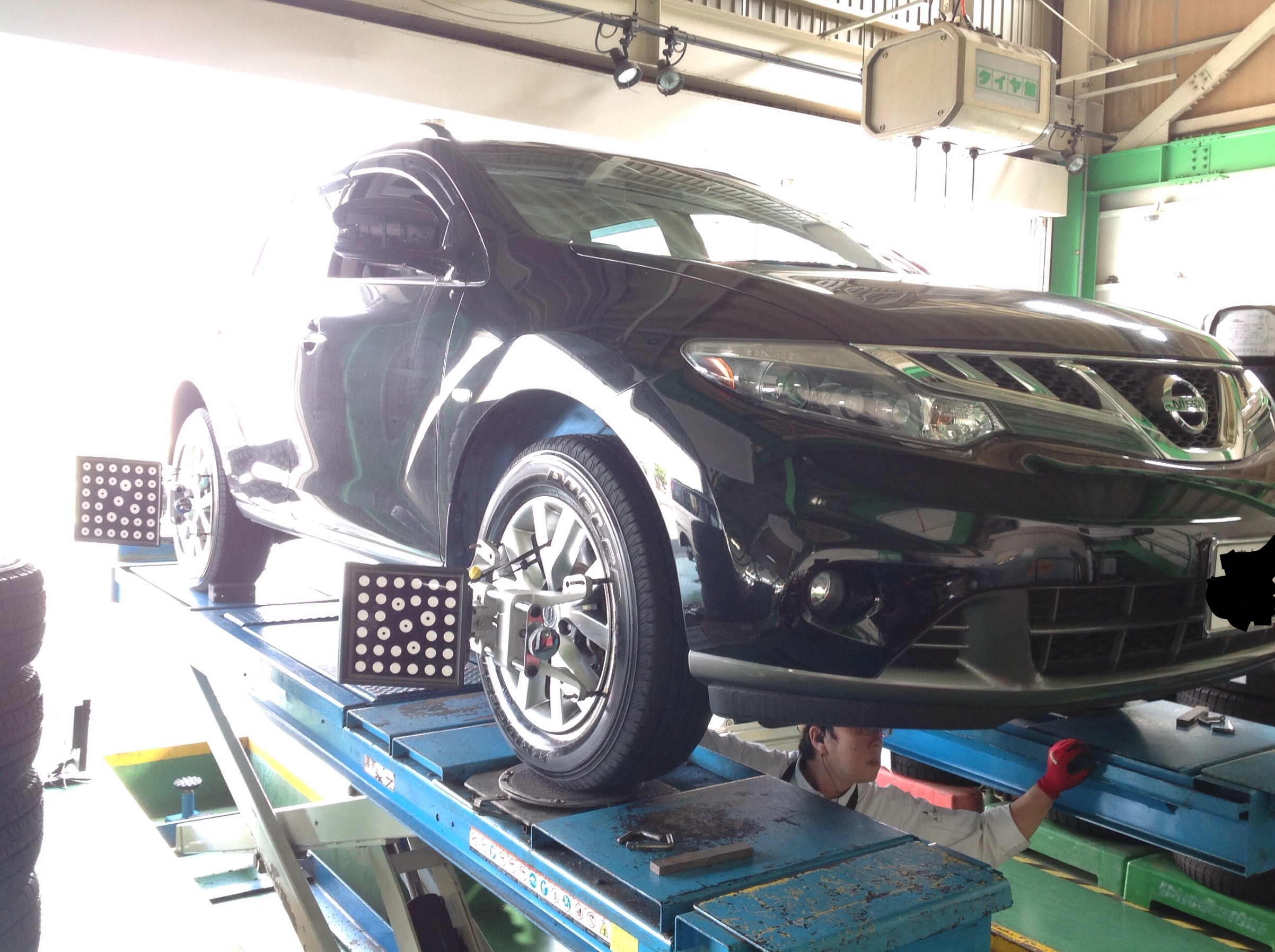 日産ムラーノ タイヤ交換+アライメント+バッテリー交換