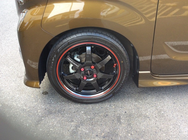 16インチがしっくりハマっております、赤のラインがアクセントになりバシッっと