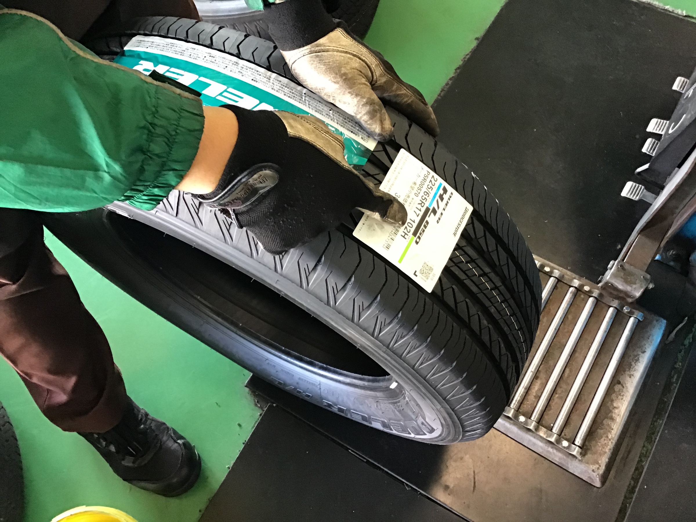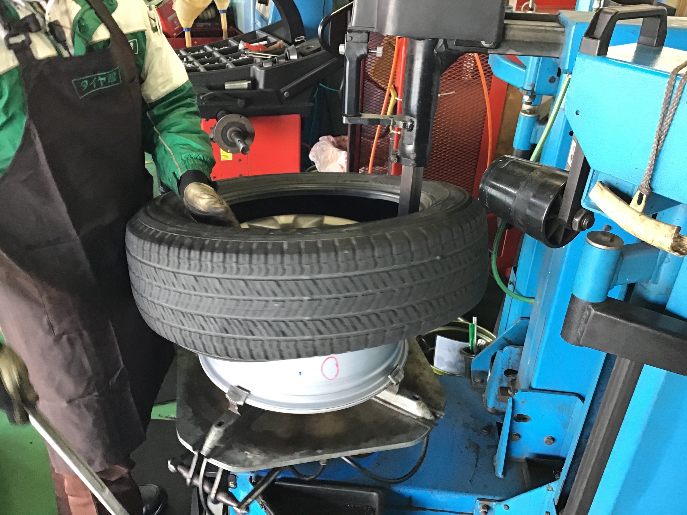 新しいタイヤの種類、サイズの確認をして…組み付けて、エアーの充填!!