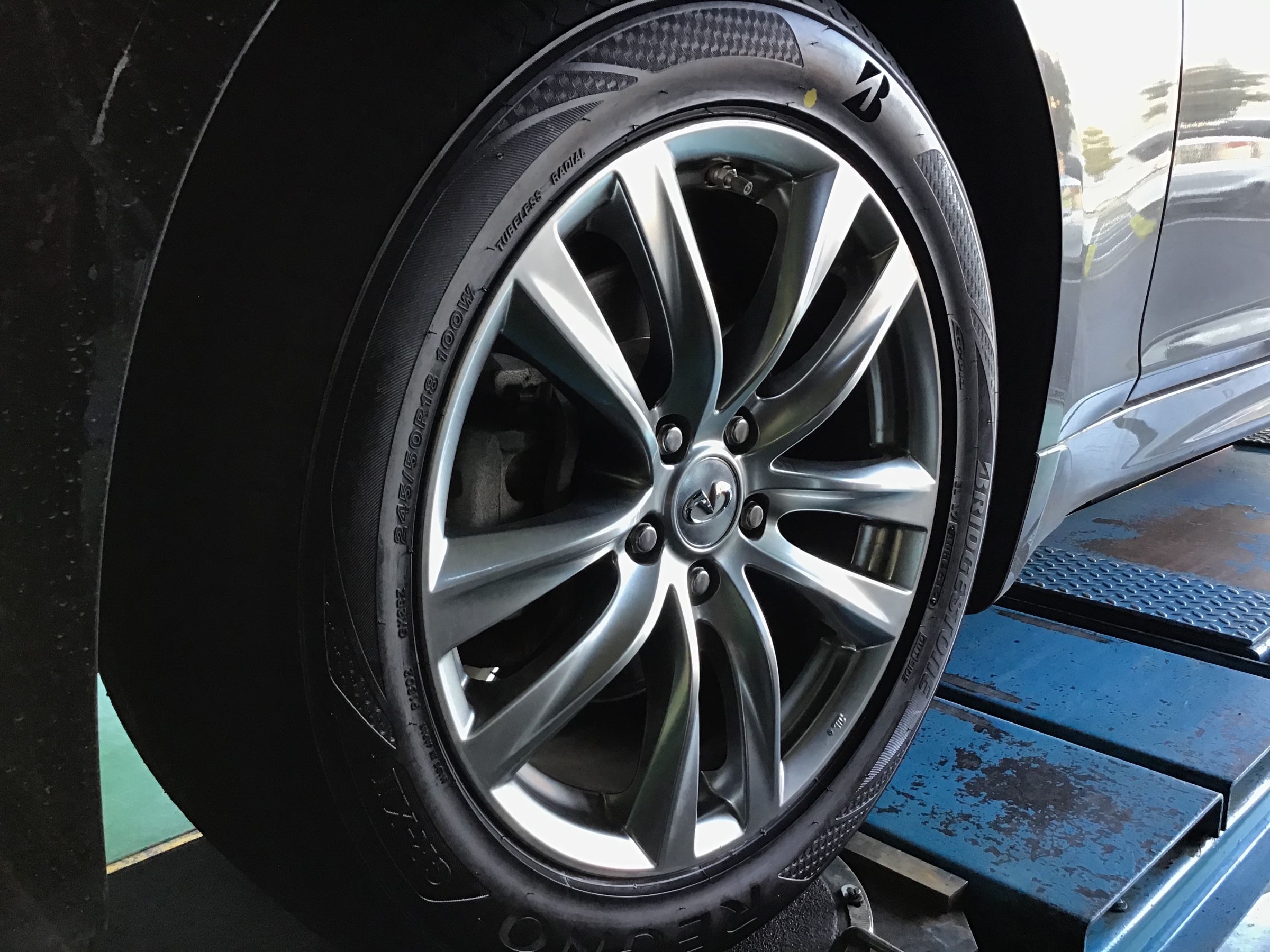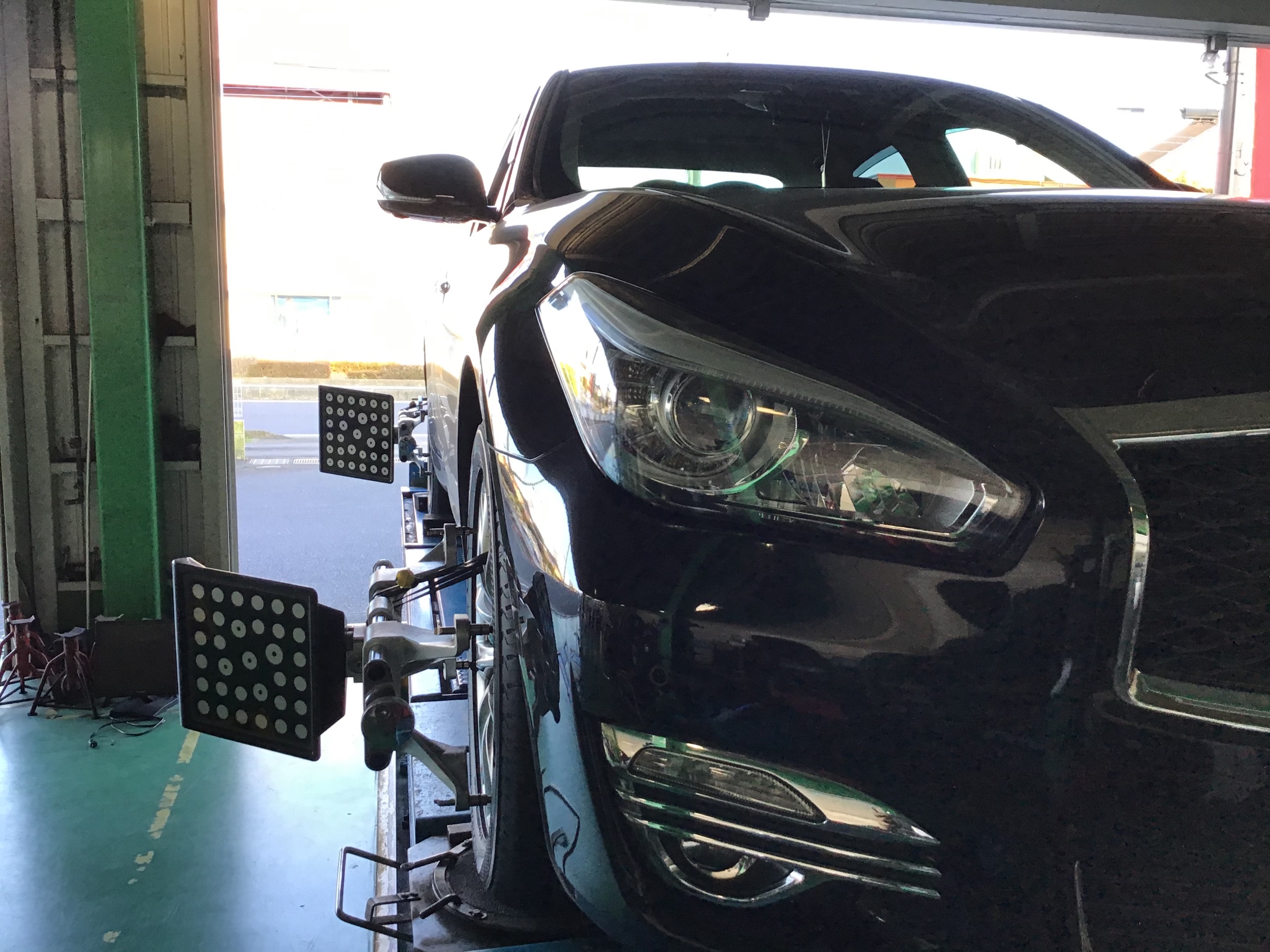 今日は日産フーガのタイヤ4本交換+アライメント調整を行ないました!