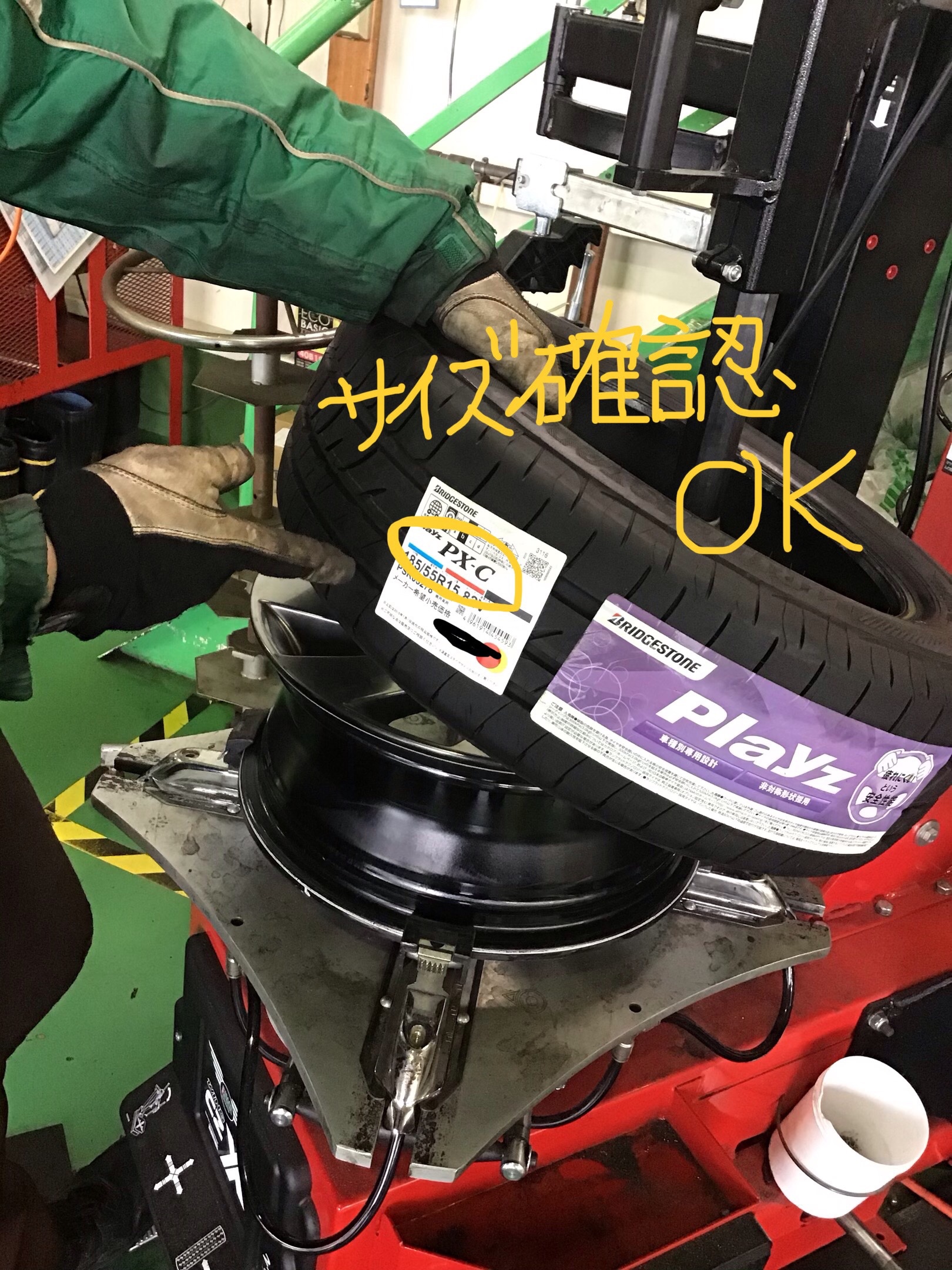 タイヤをつける前にはサイズと銘柄を確認してから組みます。