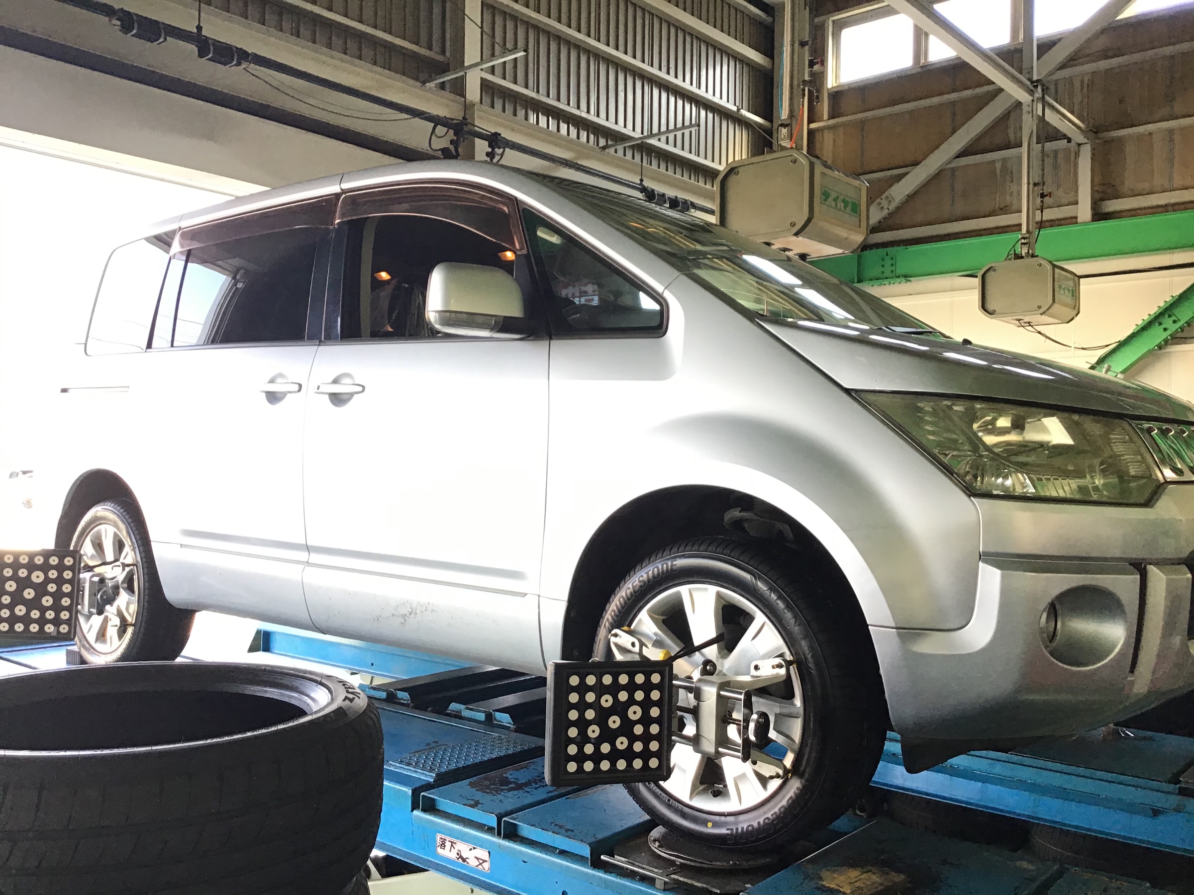 本日は 三菱 デリカD:5 の タイヤ4本交換+アライメント調整