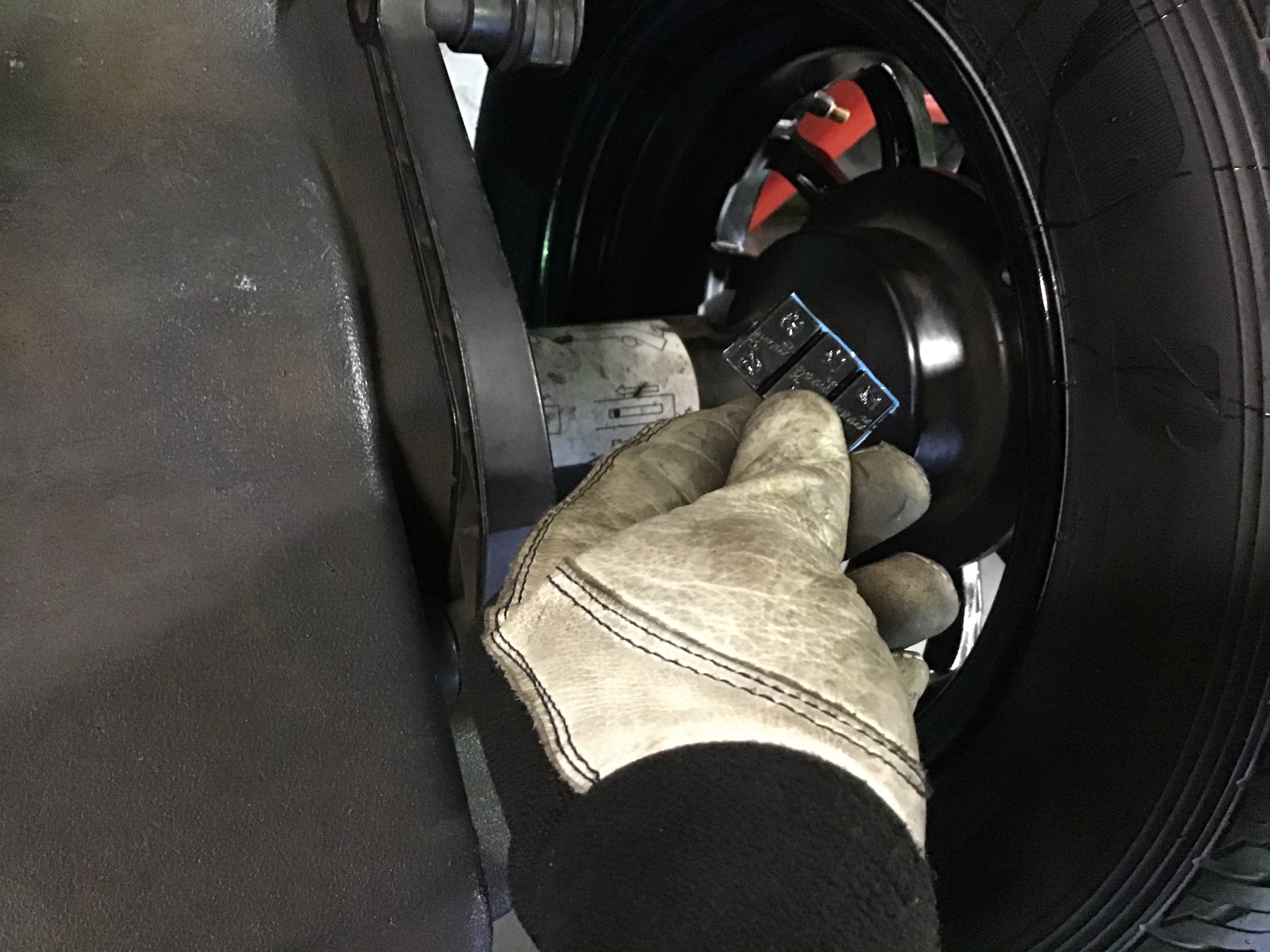 黒系統のアルミの場合、黒色のウェイトで目立たないよう工夫しています♪