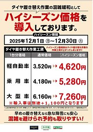 しばらく更新せず、申し訳ありませんでした。 あっという間に、四月も半ばまできましたね! 今年は【春一番】がなかったのと、今日のようにさむーい日が続いているので、 変な天候だなぁと感じています。 今の時期は、スタッドレスタイヤからの履き替えが集中しており、週末の予約枠は 残り僅かとな...