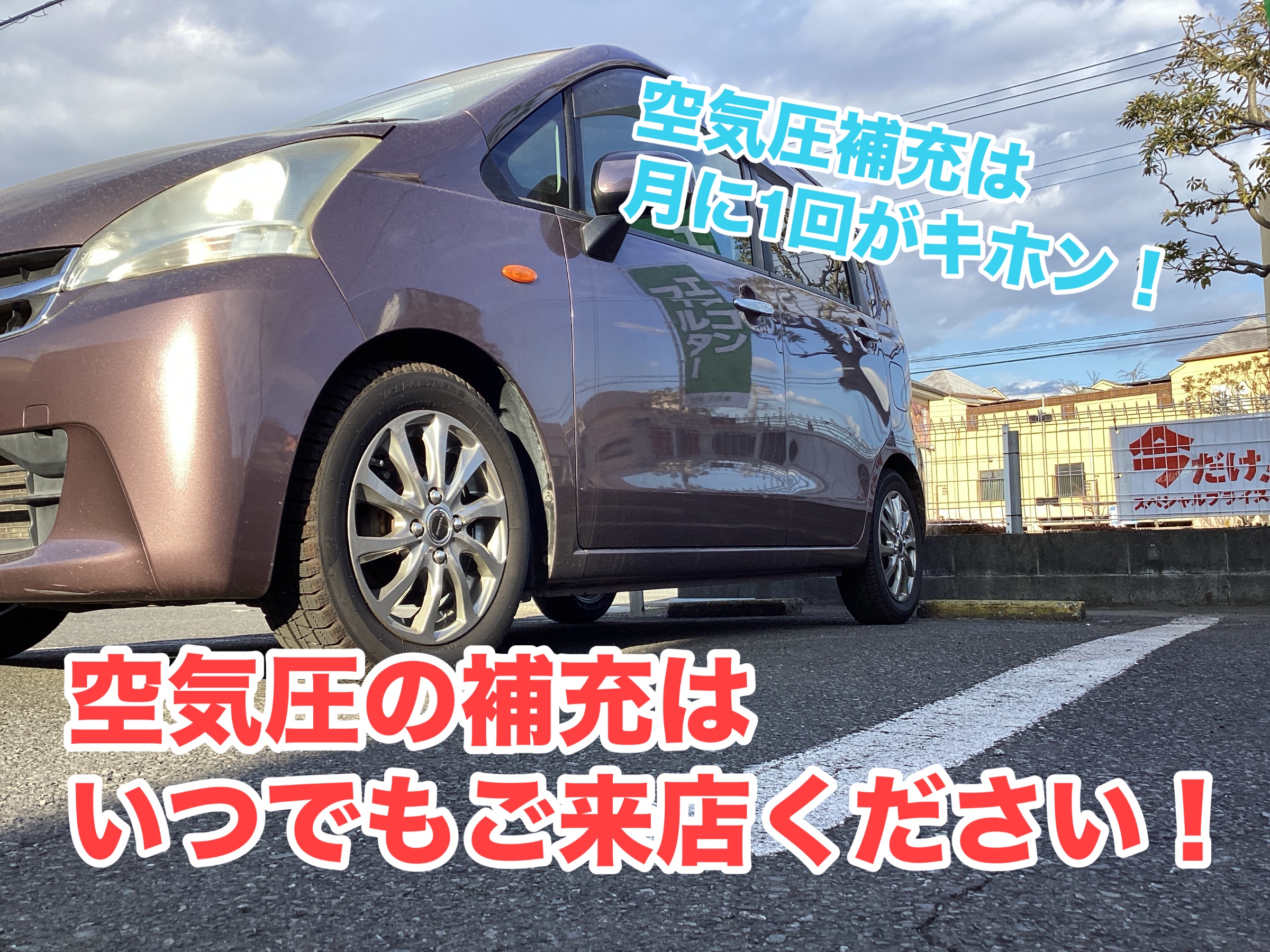 空気圧補充はいつでもご来店ください!! ムーヴで空気圧補充です!