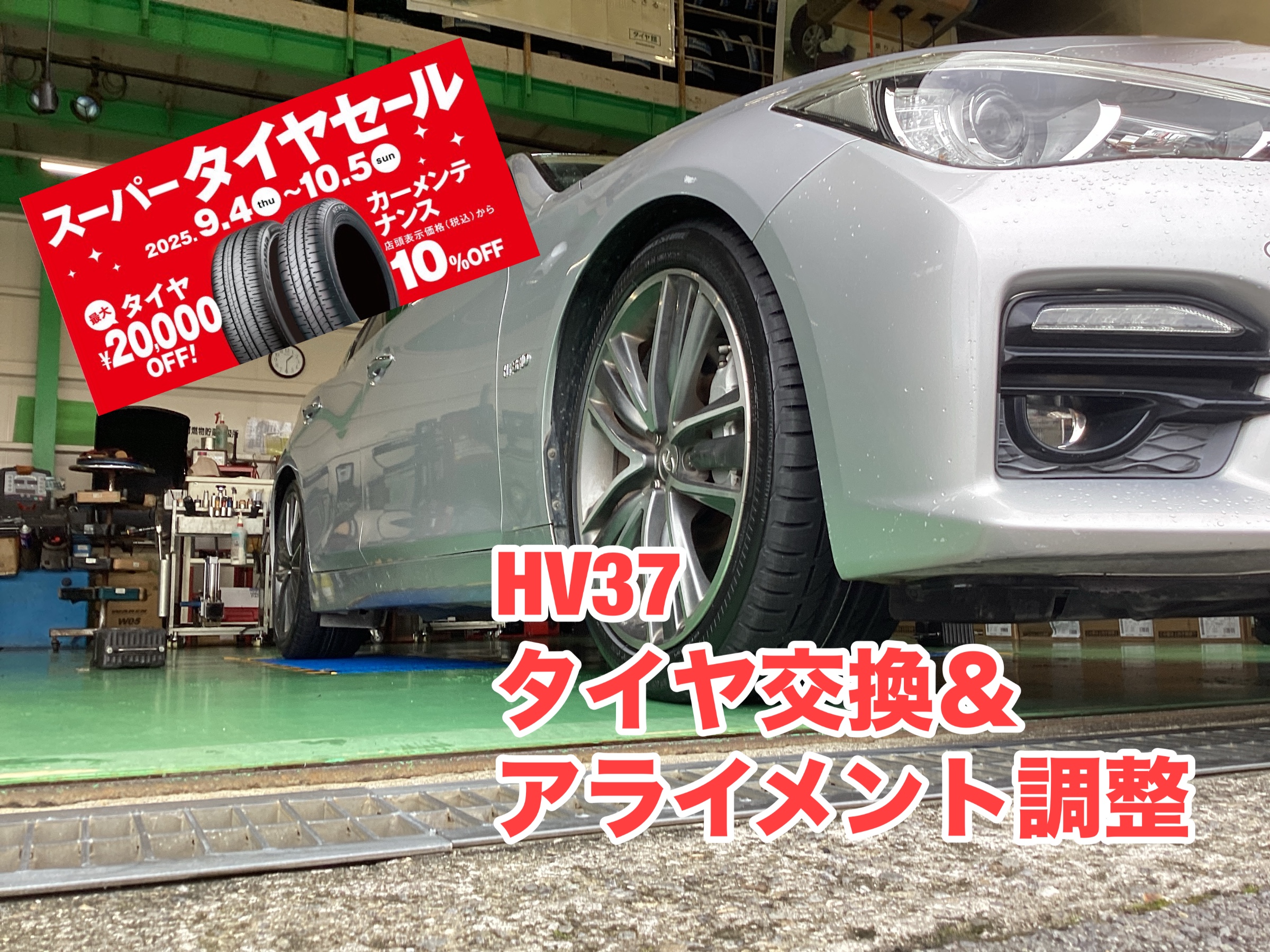 みなさん、こんにちは! 厚木市 林 国道412号線沿い ゴルフ用品の ゴルフドゥ さん向かいの タイヤ館厚木店 ざわちん です(*´◒`*) 本日は 日産スカイライン HV37 の タイヤ交換とアライメント調整 をご紹介いたします(#^.^#) こちらのお客様は そろそろタイヤも古いしタイヤ交換をしたい とご来店さ...