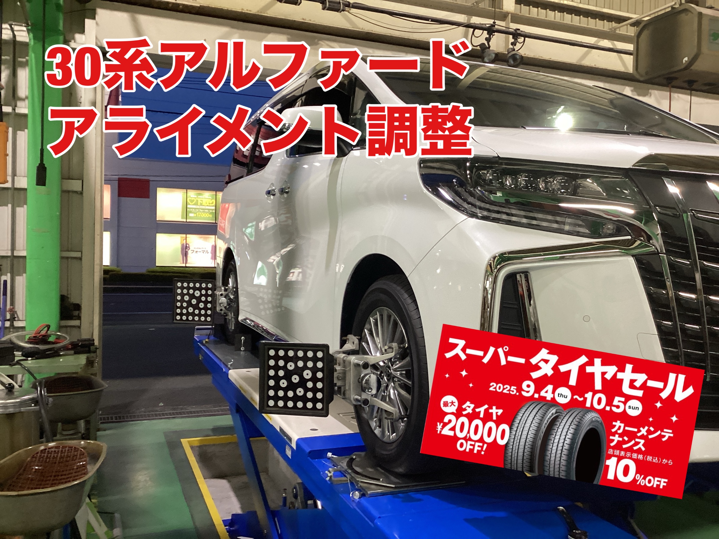 みなさん、こんにちは! 厚木市 林 国道412号線沿い ゴルフ用品の ゴルフドゥ さん向かいの タイヤ館厚木店 ざわちん です(*´◒`*) 本日は トヨタ アルファード(30系) の アライメント調整 をご紹介いたします(#^.^#) こちらのお客様は 足回りを純正に戻したので、アライメントを取りたい とご来...