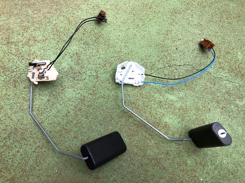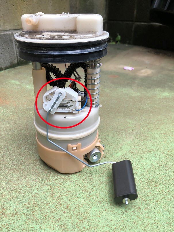 この赤丸の部分がセンダーゲージと言って、燃料タンク内の油面検知して燃料量を計る部品です。