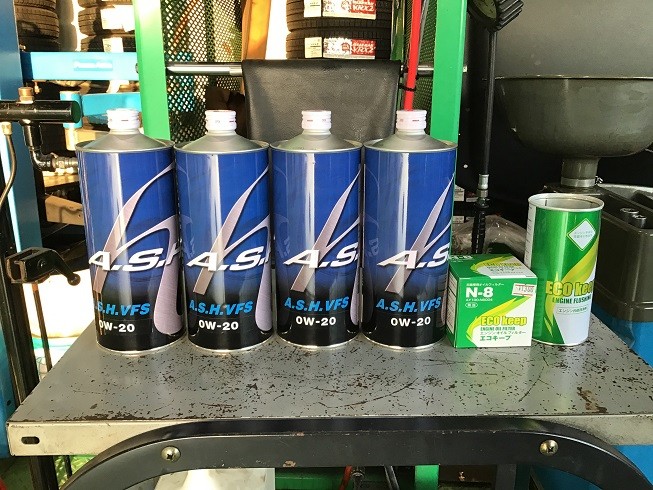 交換するオイルはA.S.HのVFSシリーズ。当店ではお馴染みの全合成純国産オイルです。