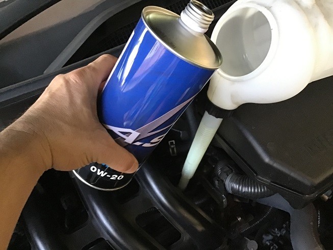オイルパンのドレンプラグのパッキンを新品に交換し、トルクレンチを用いてドレンプラグを締め付けした後にA.S.Hオイルを注入します。