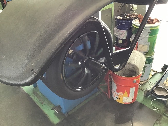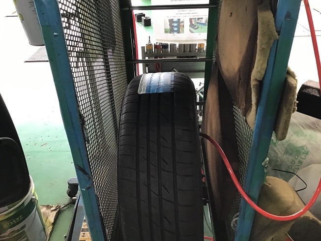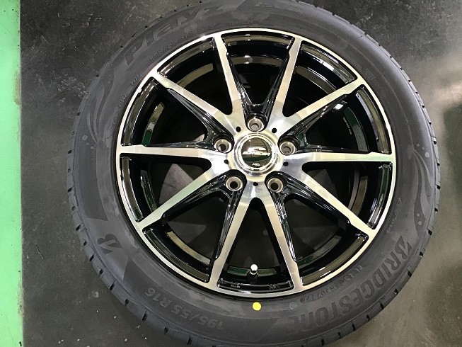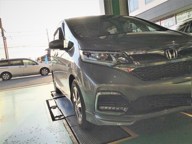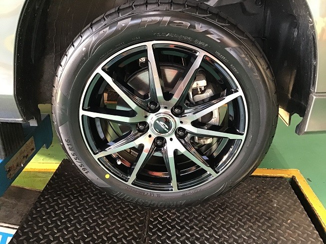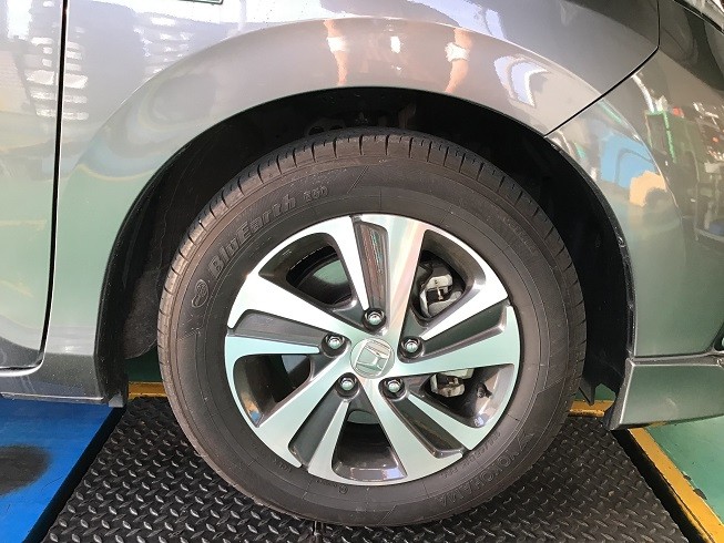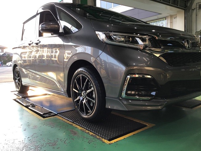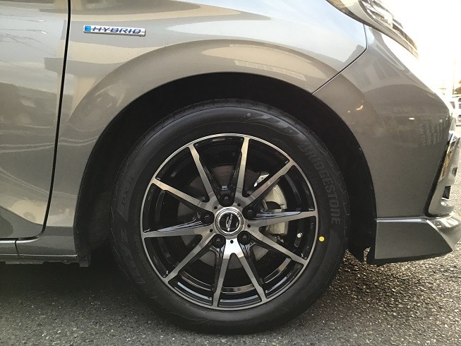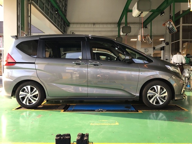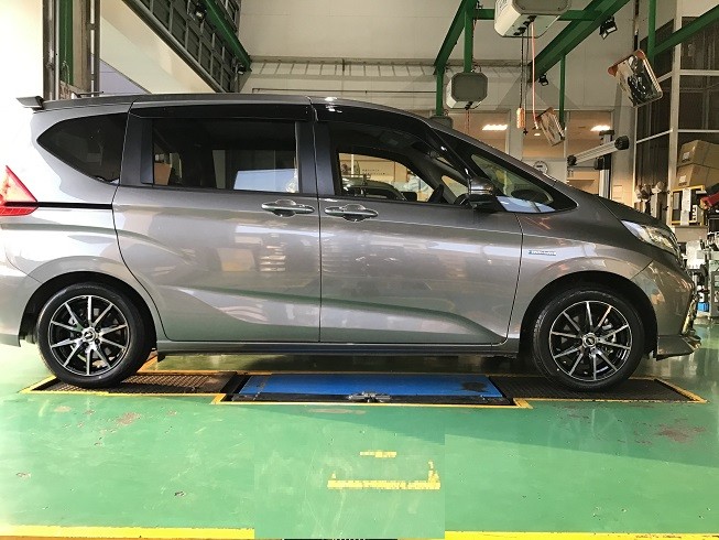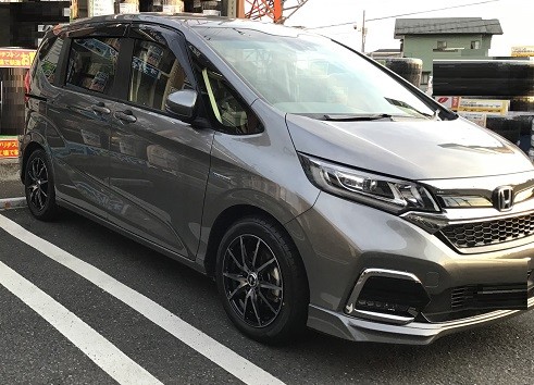 取付するのは、フリード+のお客様。高速走行が多く、しっかり安定した走行が出来るよう純正より1インチアップの16インチでご成約頂きました。