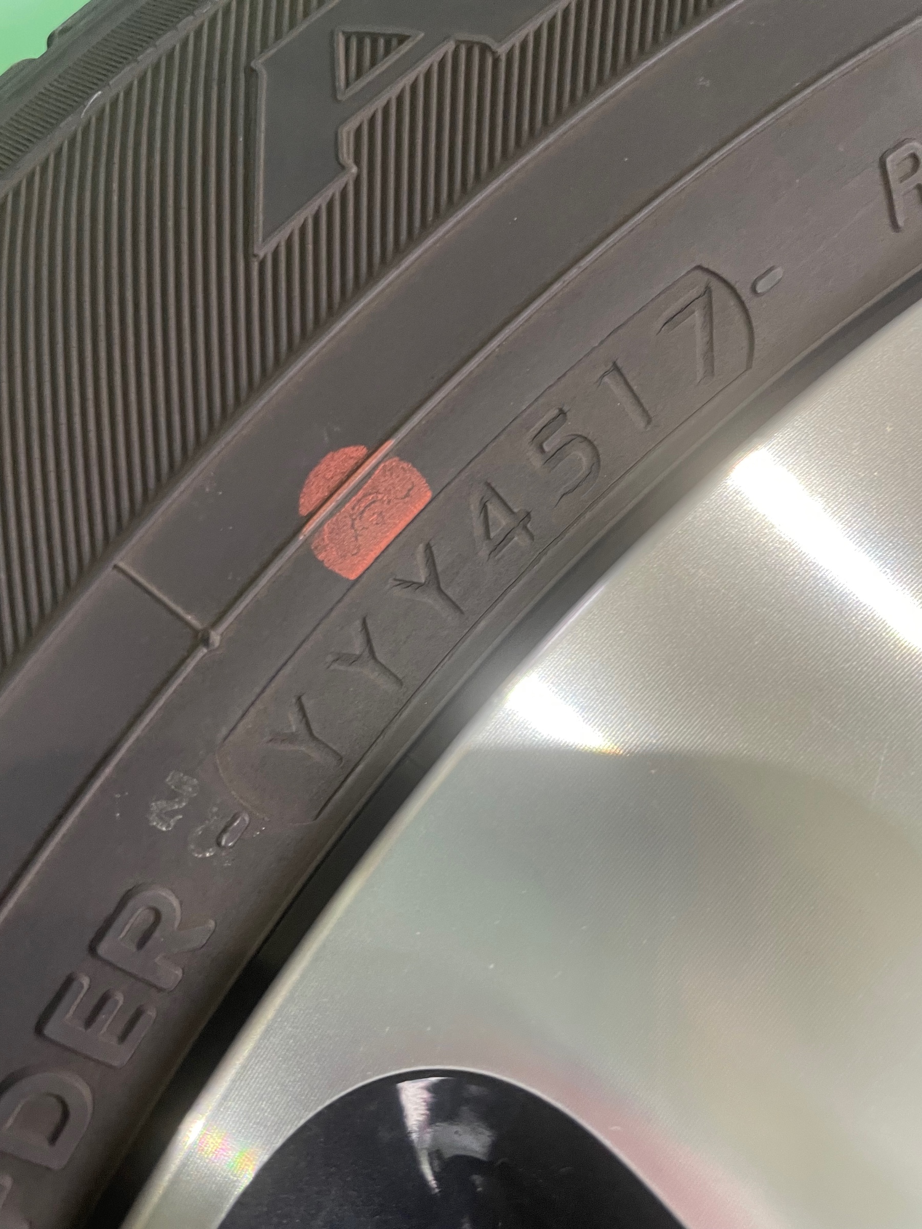 お車のオーナー様に聞いてみると、こちらのタイヤは5~6年ほど使用されていました。