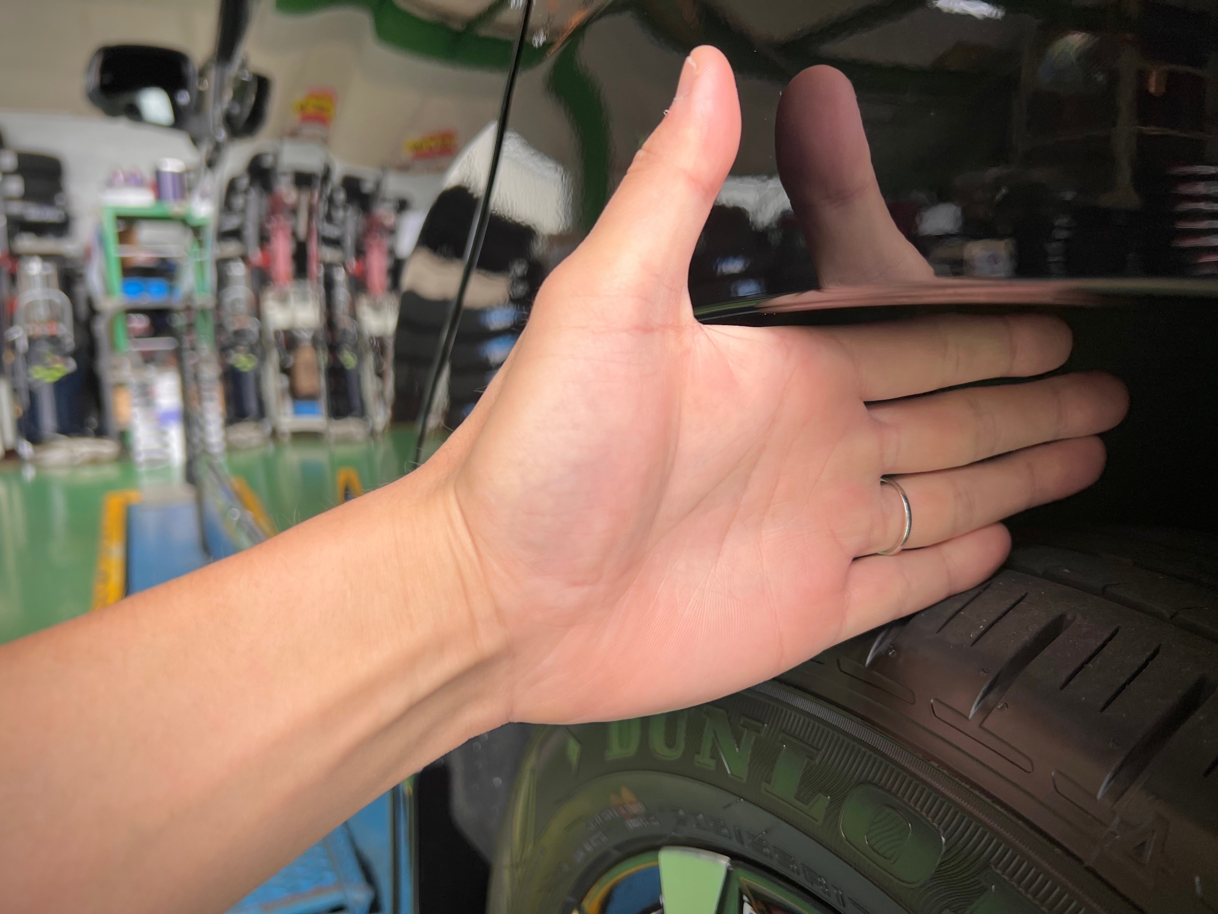 フロント、リア共に約指4〜4.5本分です。