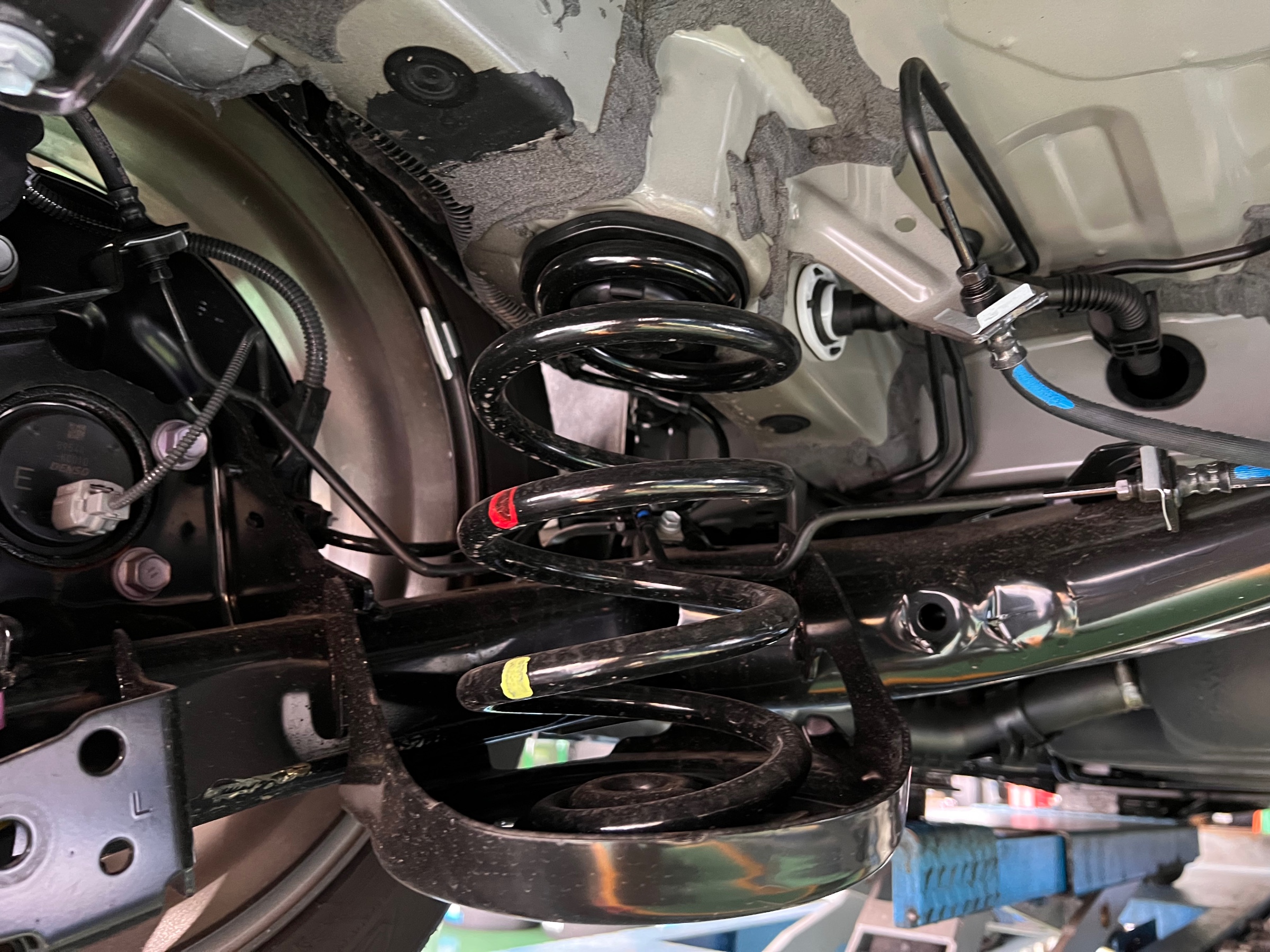 皆さんこんにちは。タイヤ館 綾瀬 小川です。 今回は トヨタ ノア (ZWR90W) の ダウンスプリング取付作業をご紹介致します。