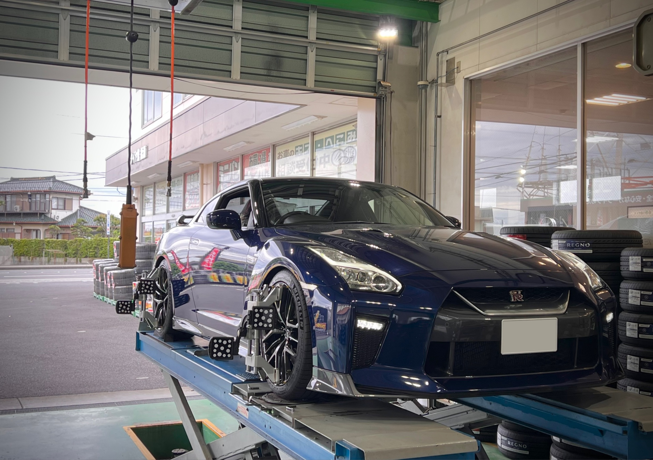 皆さんこんにちは。タイヤ館 綾瀬 小川です。 今回は NISSAN GT-R (R35)の アライメント調整作業をご紹介致します。