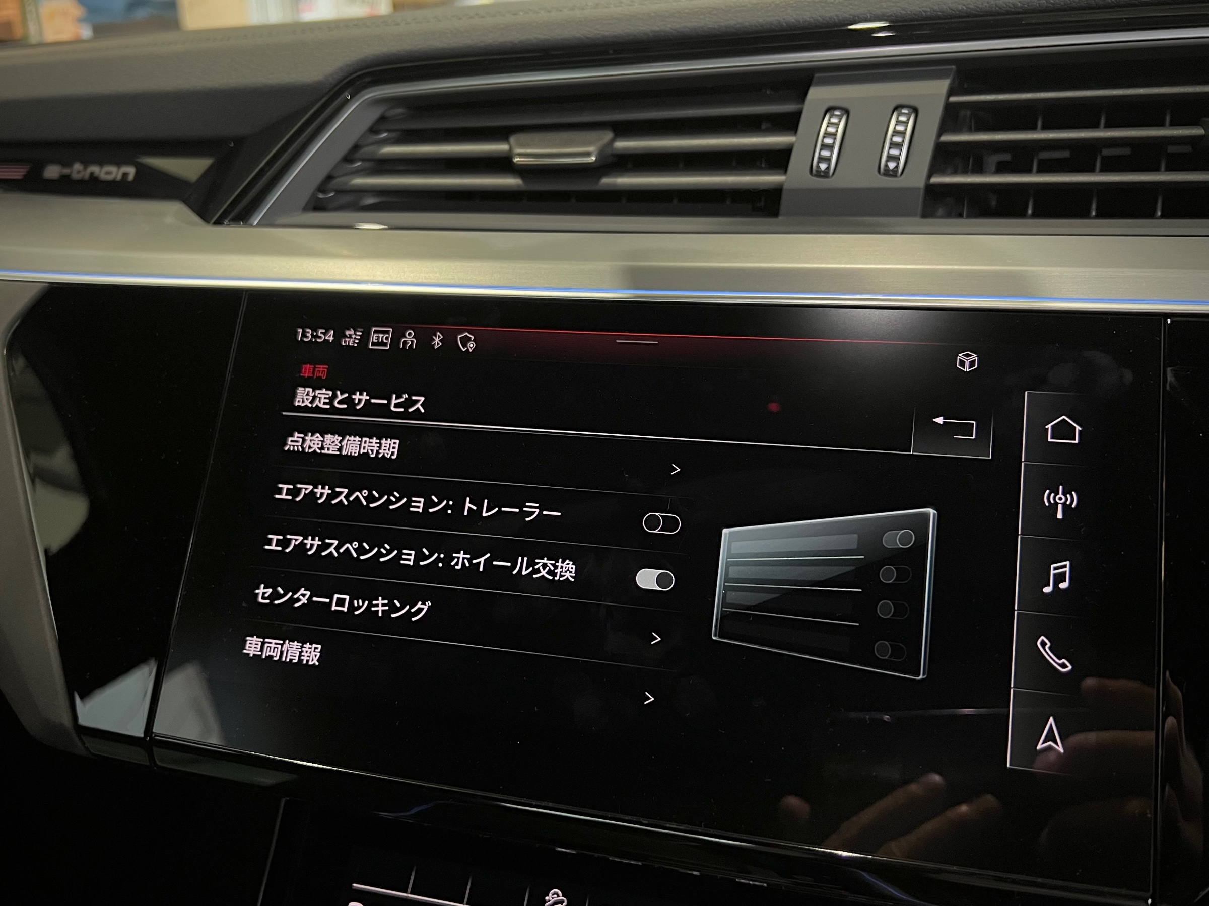 エアサスペンション: ホイール交換 をONにし