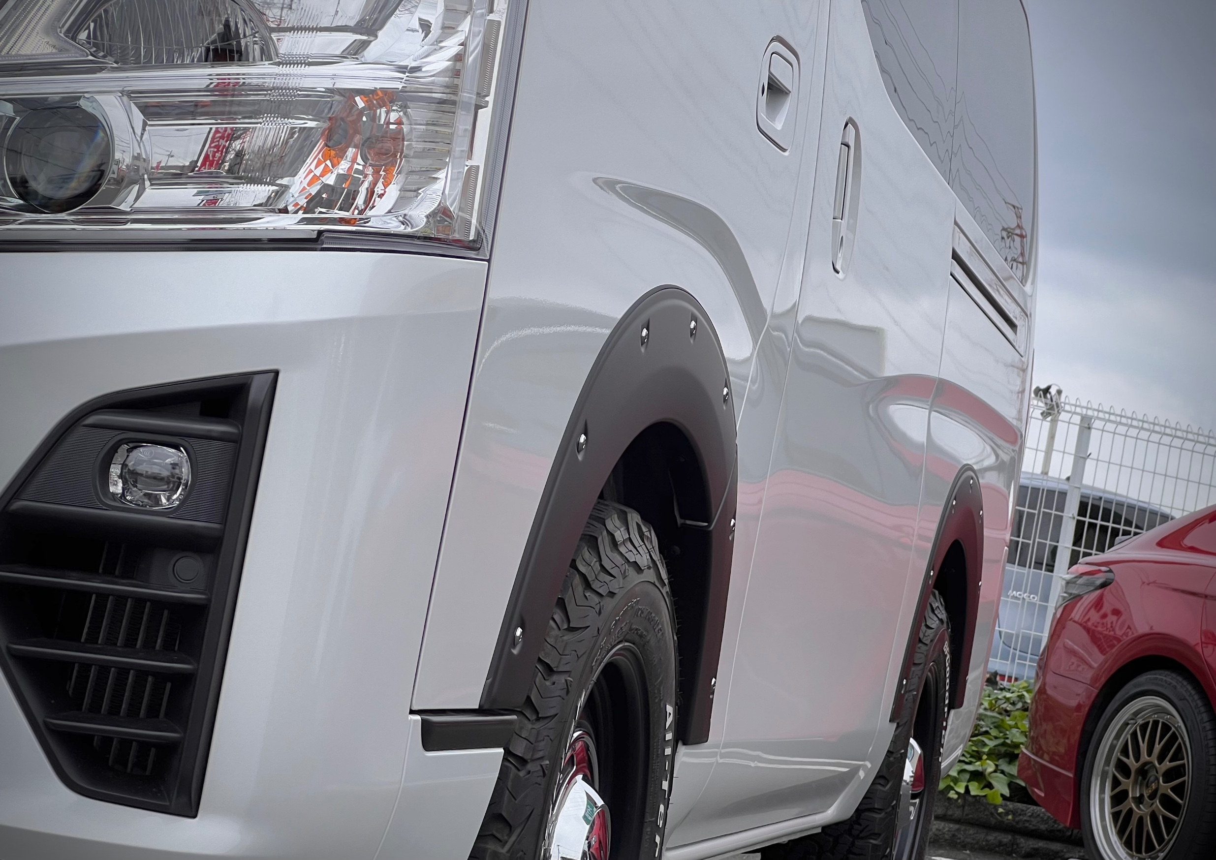NISSAN NV350 CARAVAN・KYB Extage ・JAOS フェンダーガーニッシュ 装着。
