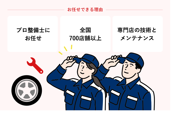 契約後の取付からメンテナンスについて、タイヤ館などの全国700店舗以上の店舗ネットワークでサポートします!