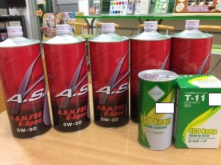 「ASH FSE 5W-30」 「エコキープ オイルフィルター」「エコキープ フラッシング」