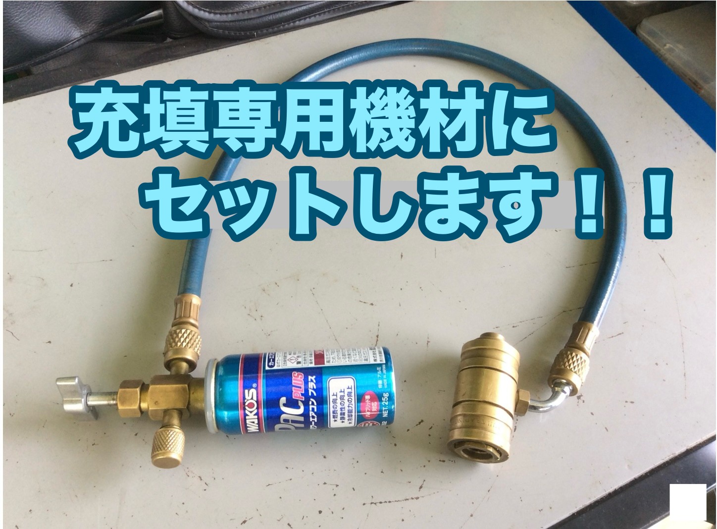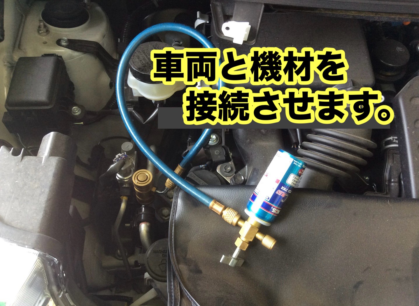 低圧バルブを見つけたら、専用機材にセットしていきます。