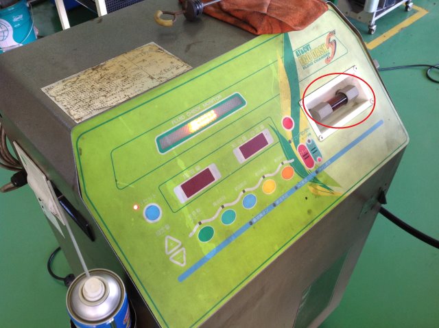 お客様のお車のATFを少しばかり吸って、汚れ具合を判定する機械です。