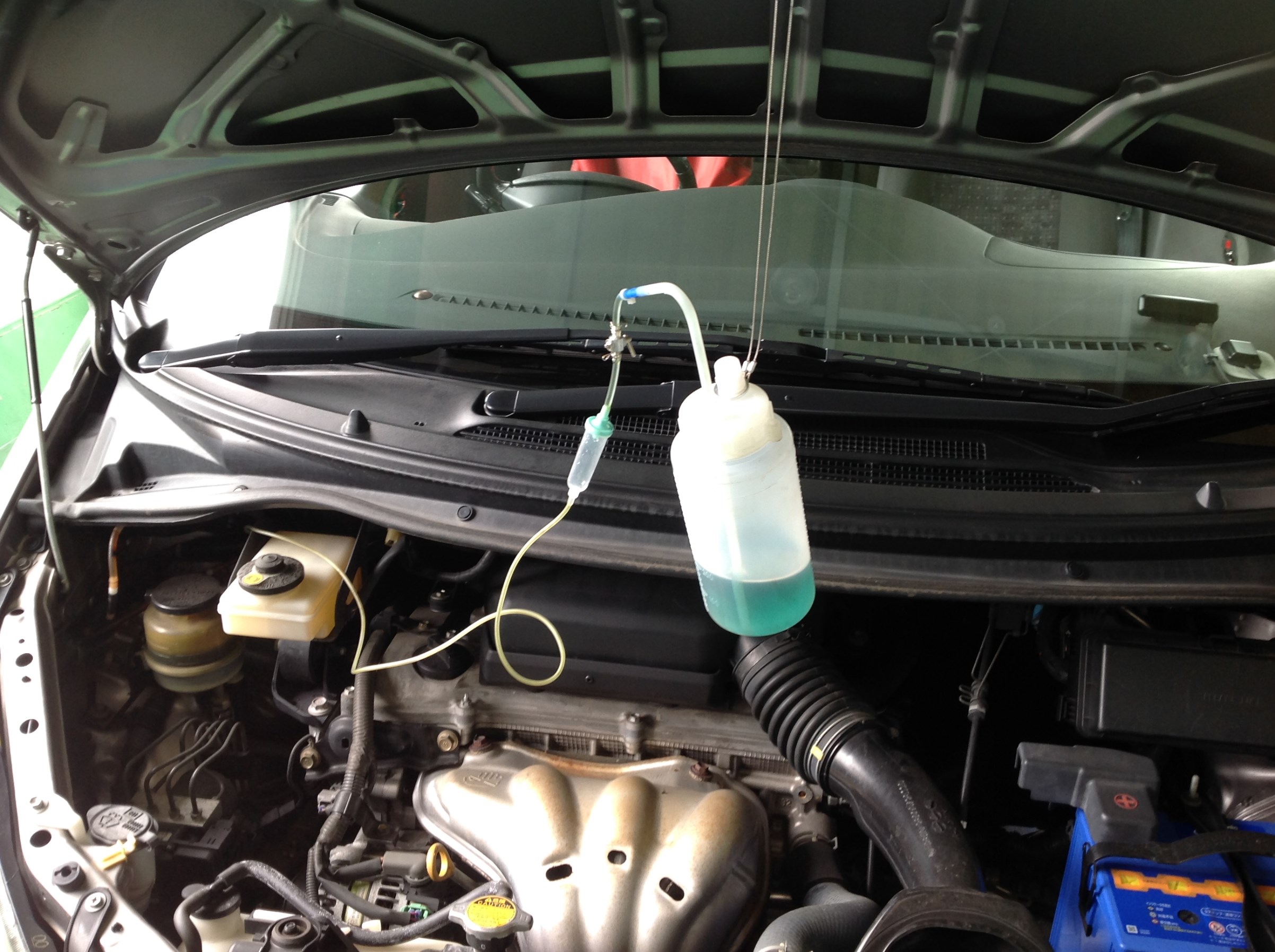 吸気スロットル以降のインテークマニホールドから、燃焼室までの中を特殊洗浄液にて洗浄する作業です。