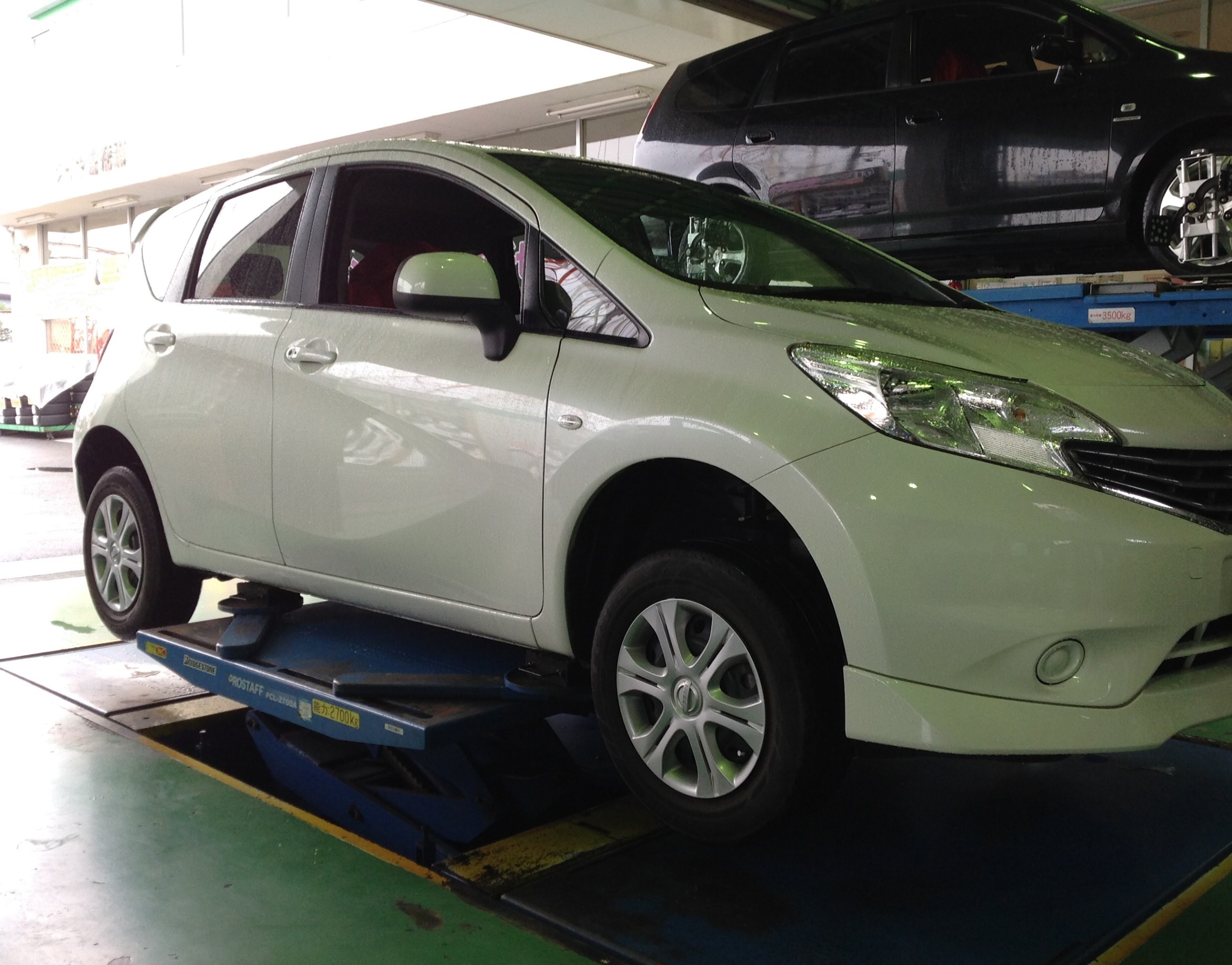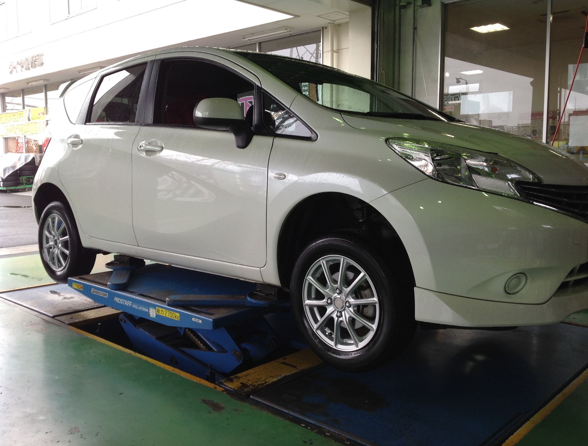 本日のご案内は、「ノート タイヤ+アルミ交換(インチアップ)」です☆