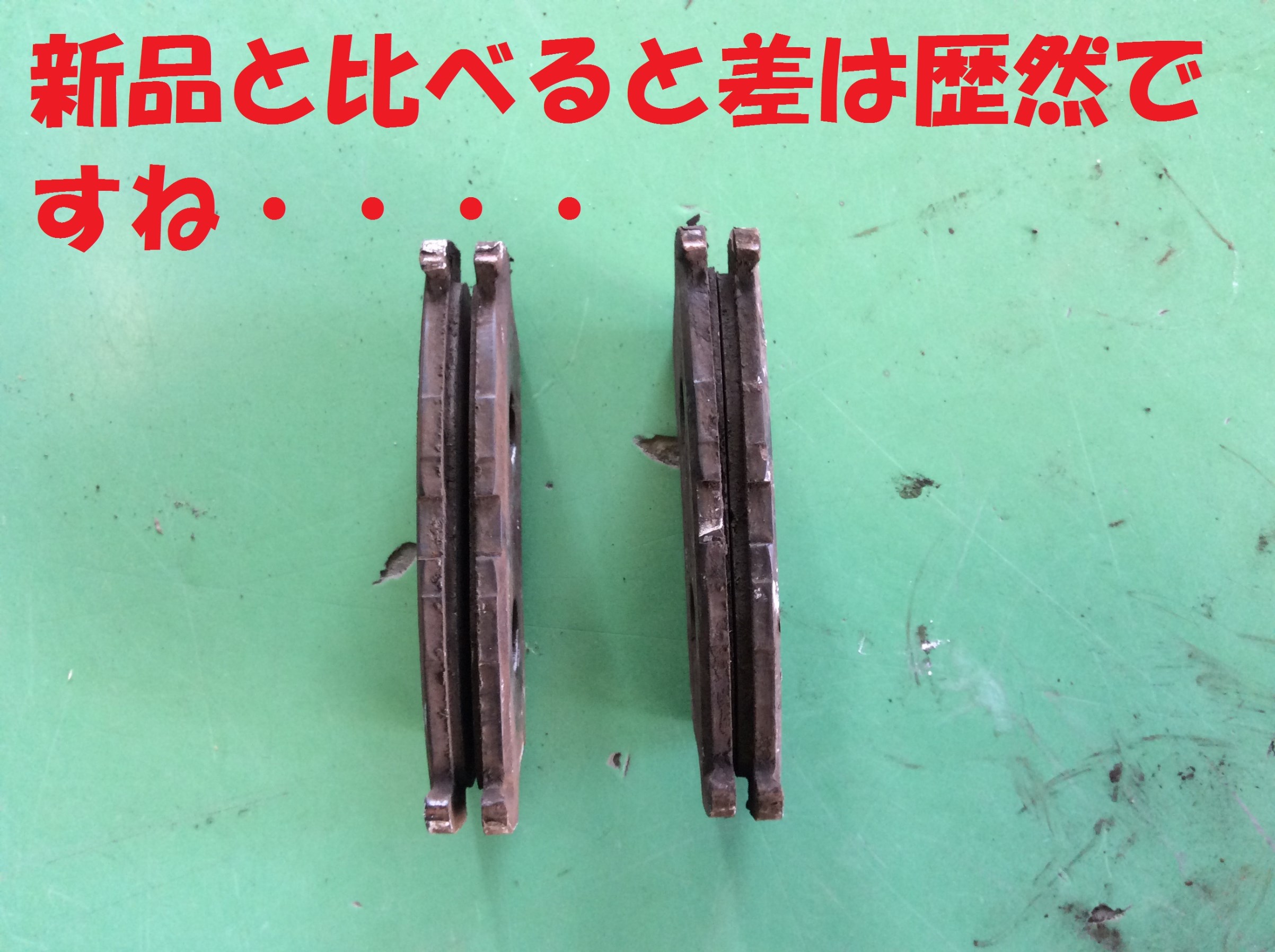 まずは、ブレーキパッドの新品状態を見てください