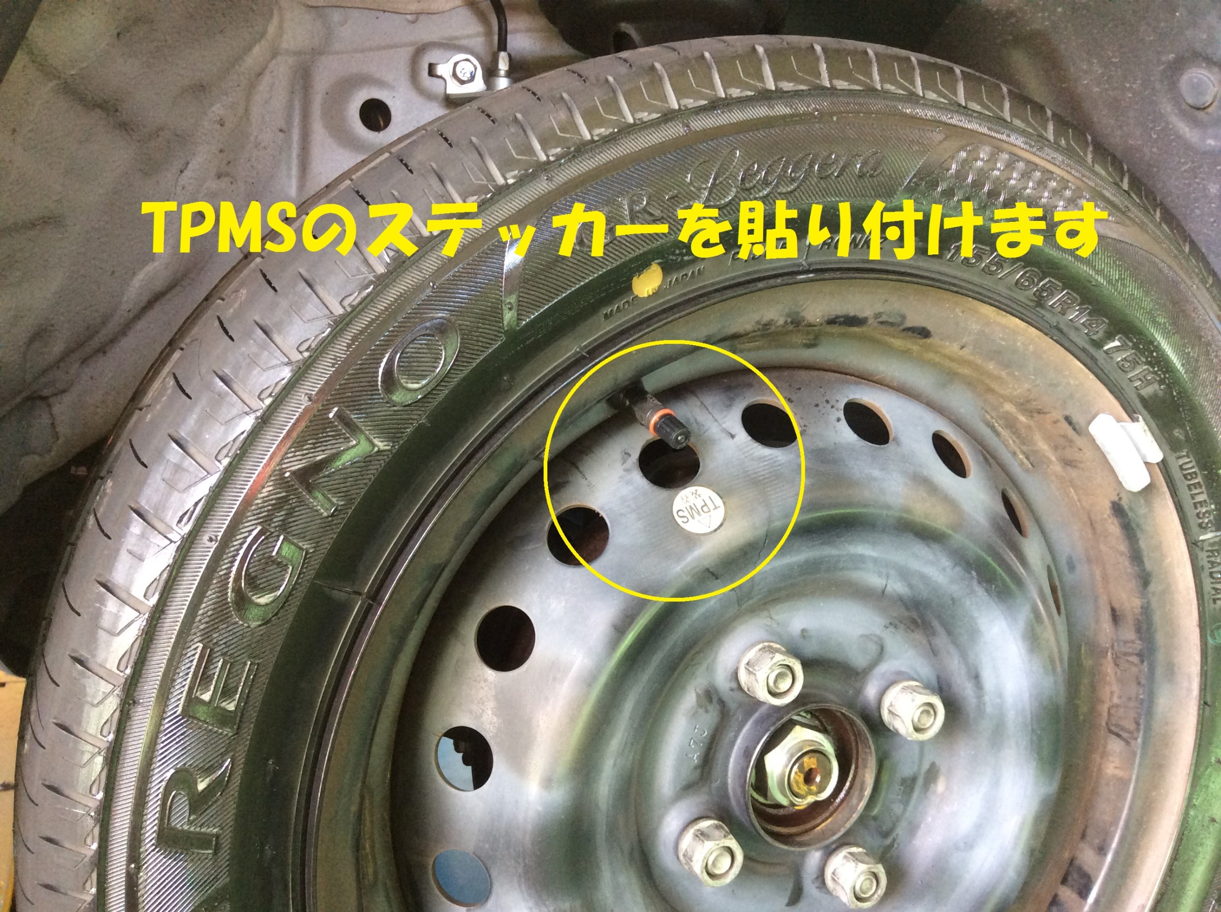 空気圧センサーが付いていることが分かるように、ホイールにステッカーを貼ります。
