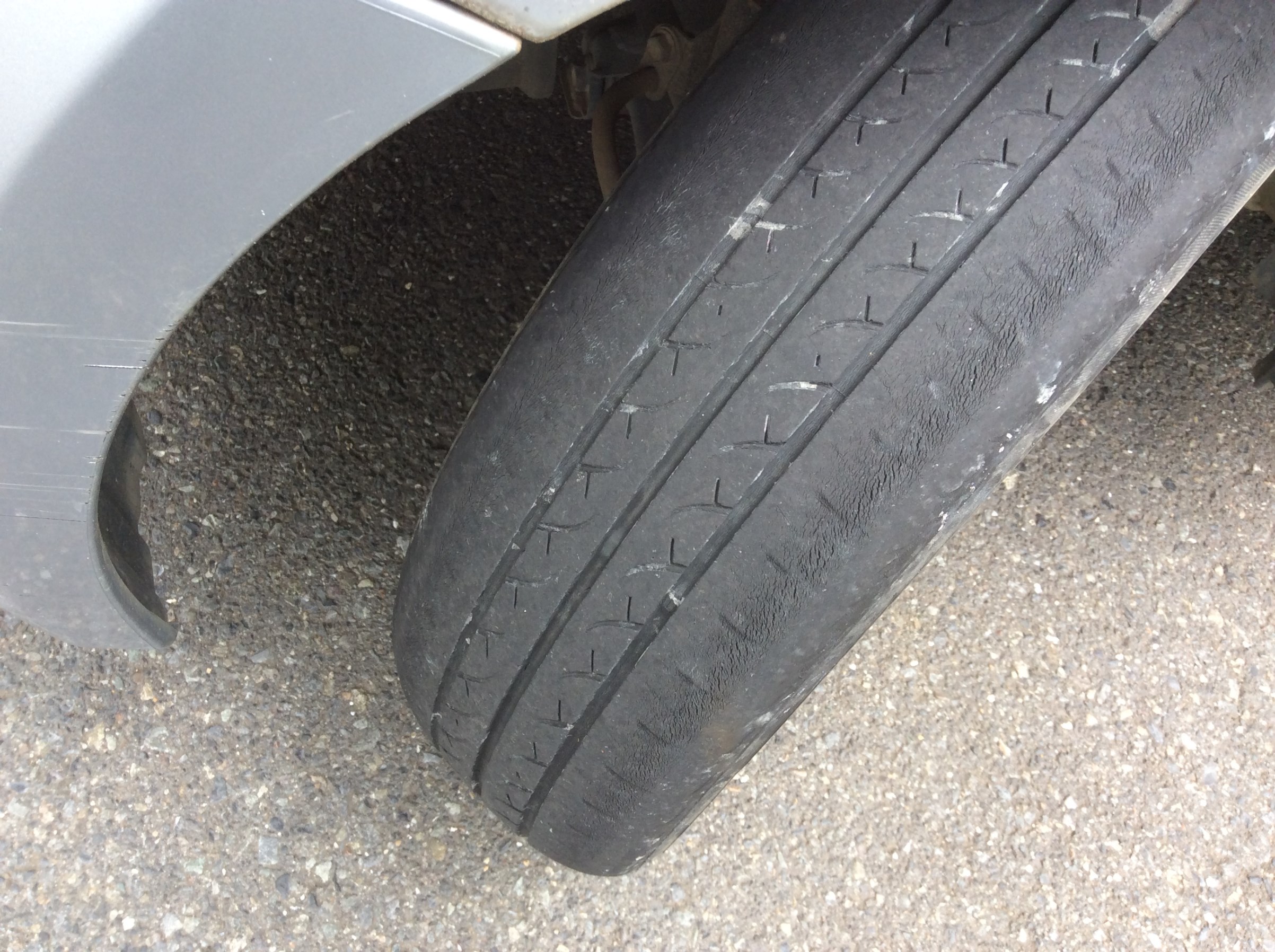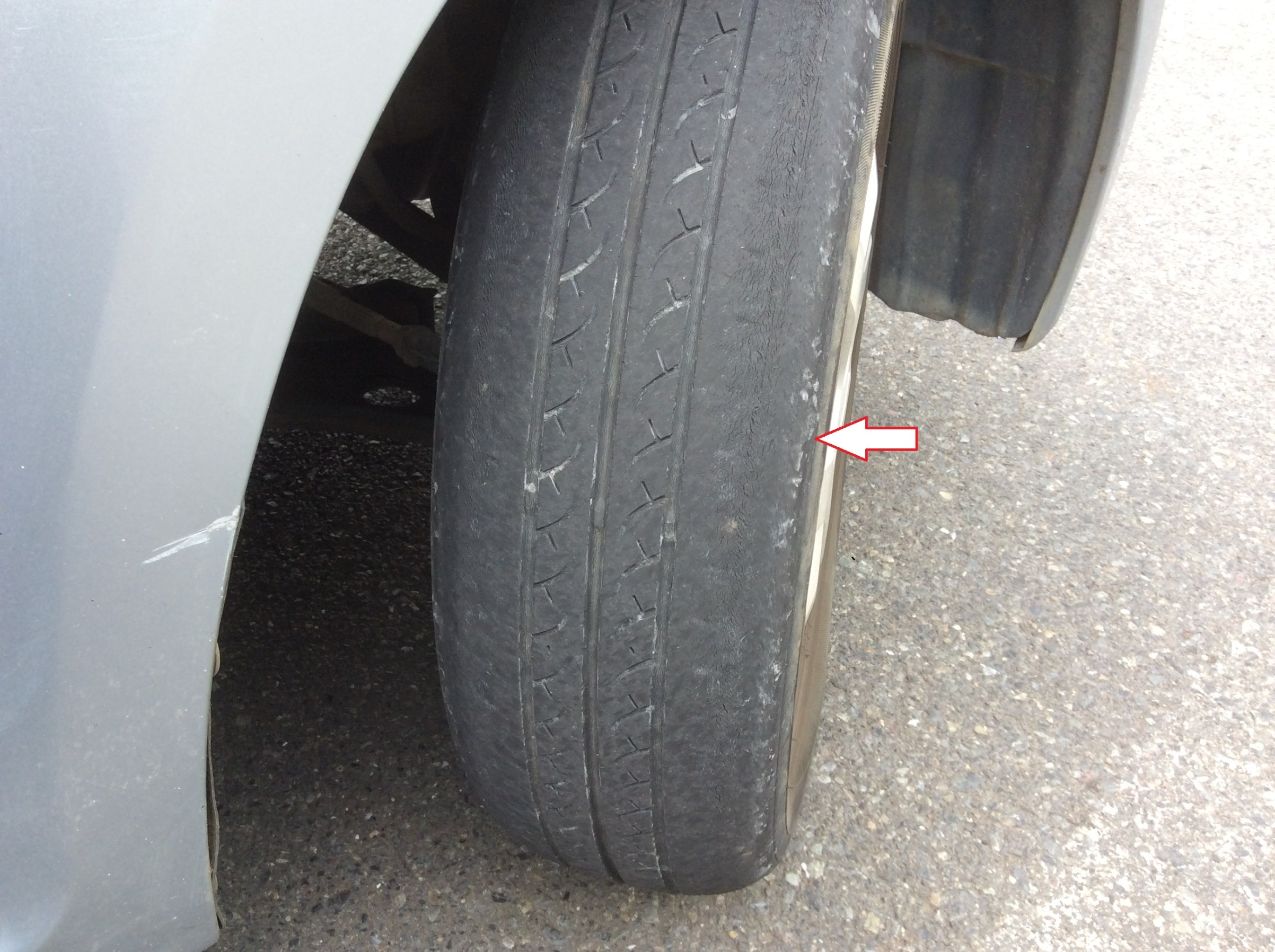 特に矢印の部分はショルダーと呼ばれる所ですが丸く擦り減っています・・・・反対側もかなり摩り減っているので4本タイヤ交換となりました!