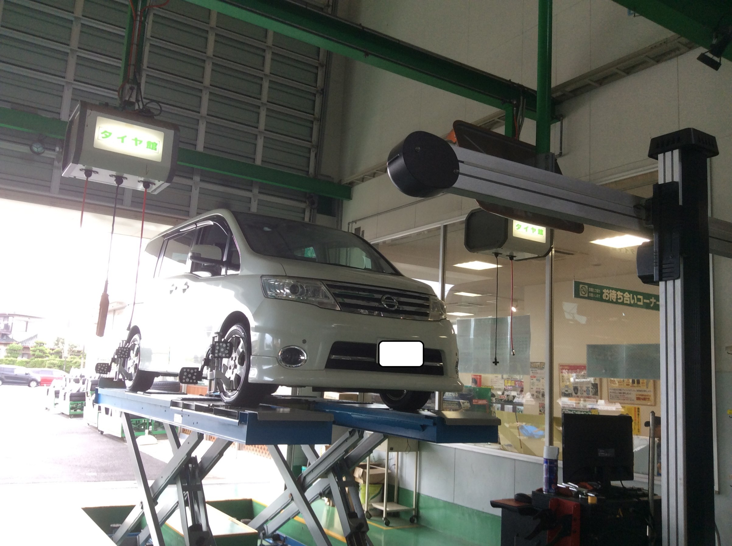 いたしました。タイヤ交換後はお決まりのアライメントです!
