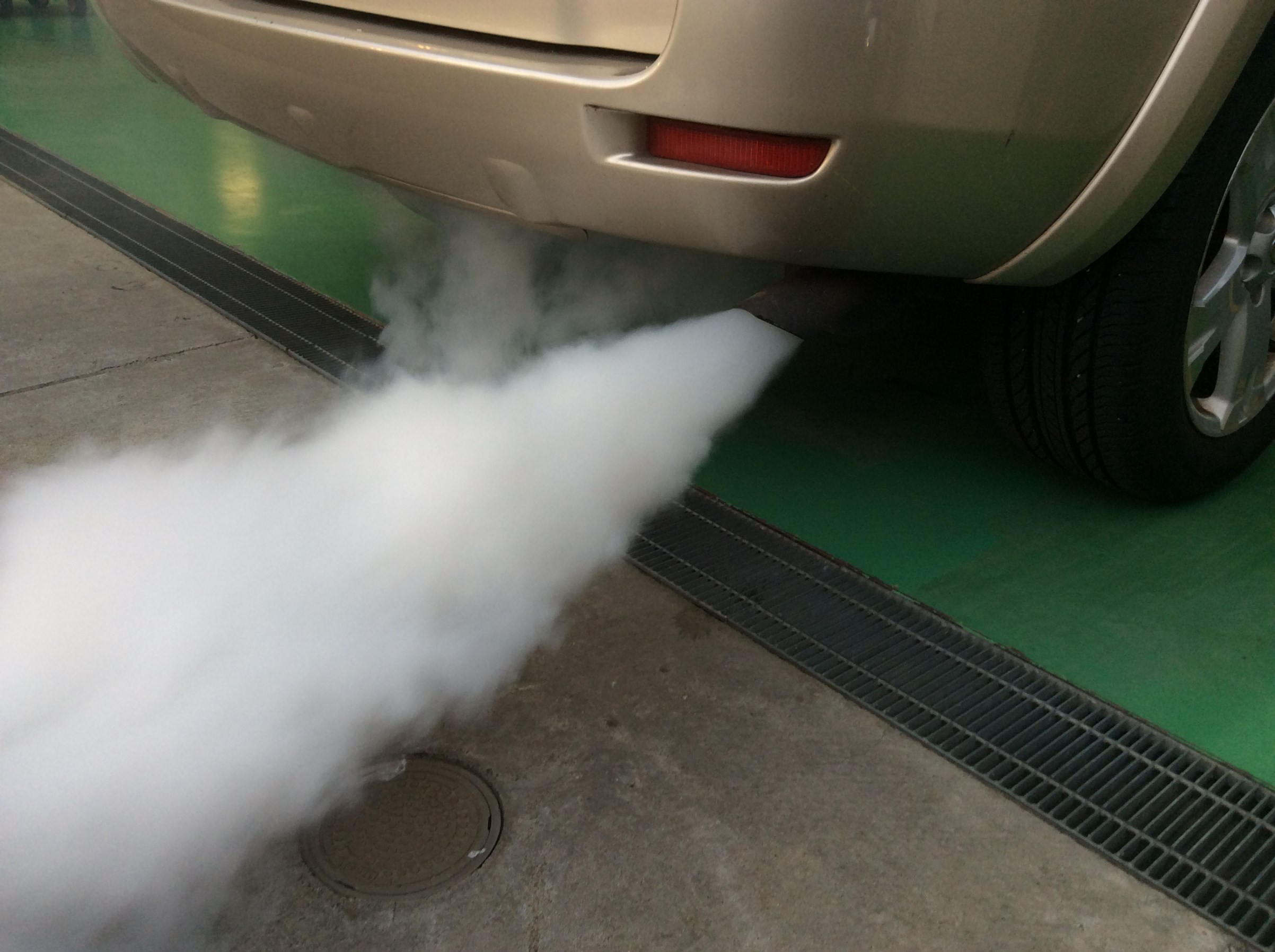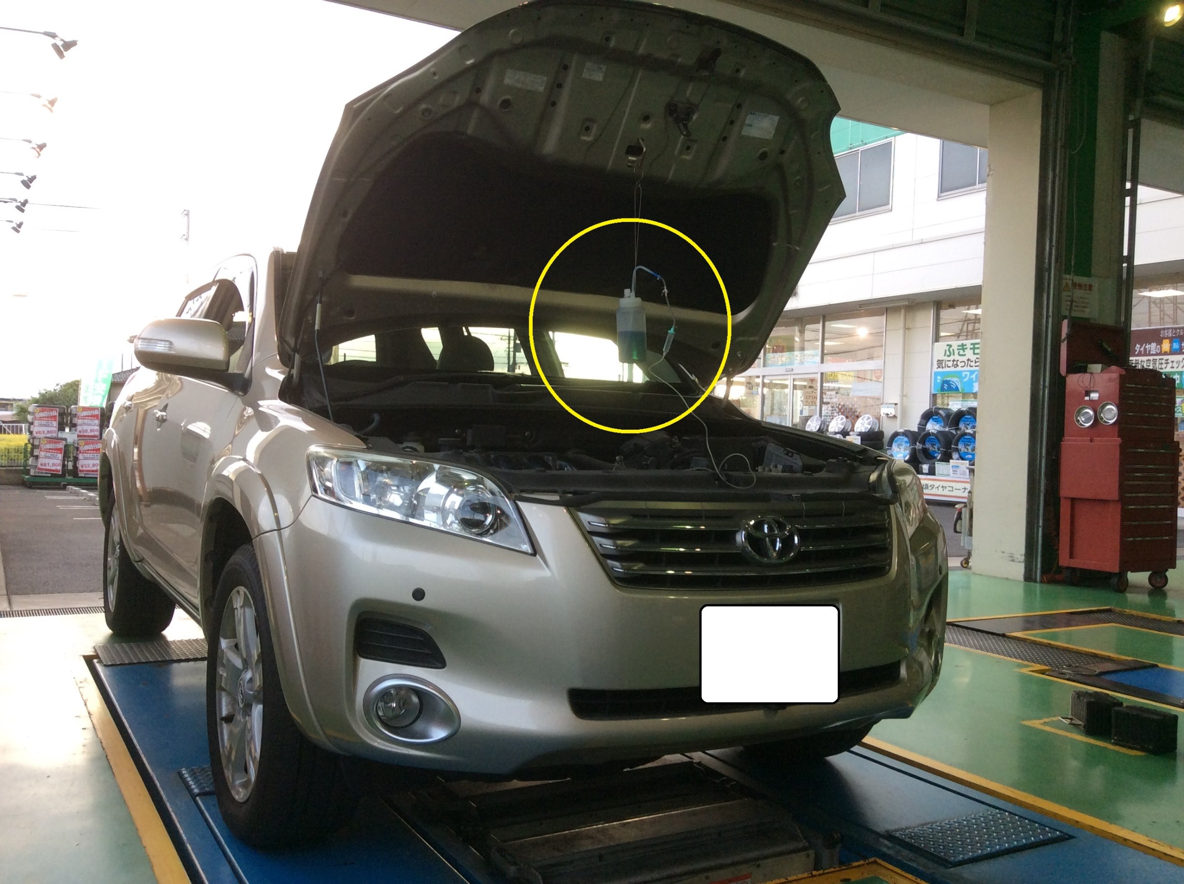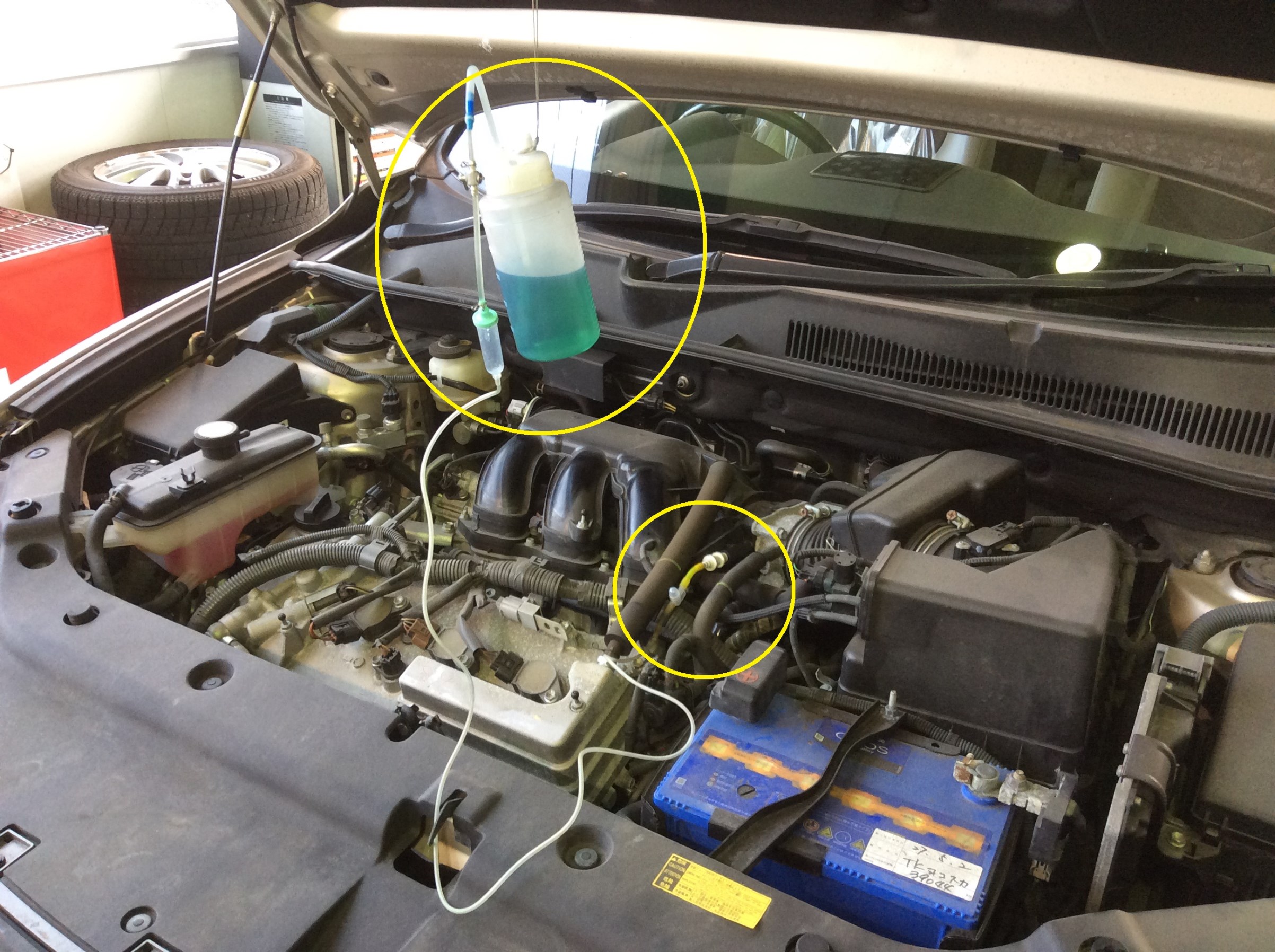 車の排気量に合わせて、洗浄剤を点滴していきます。