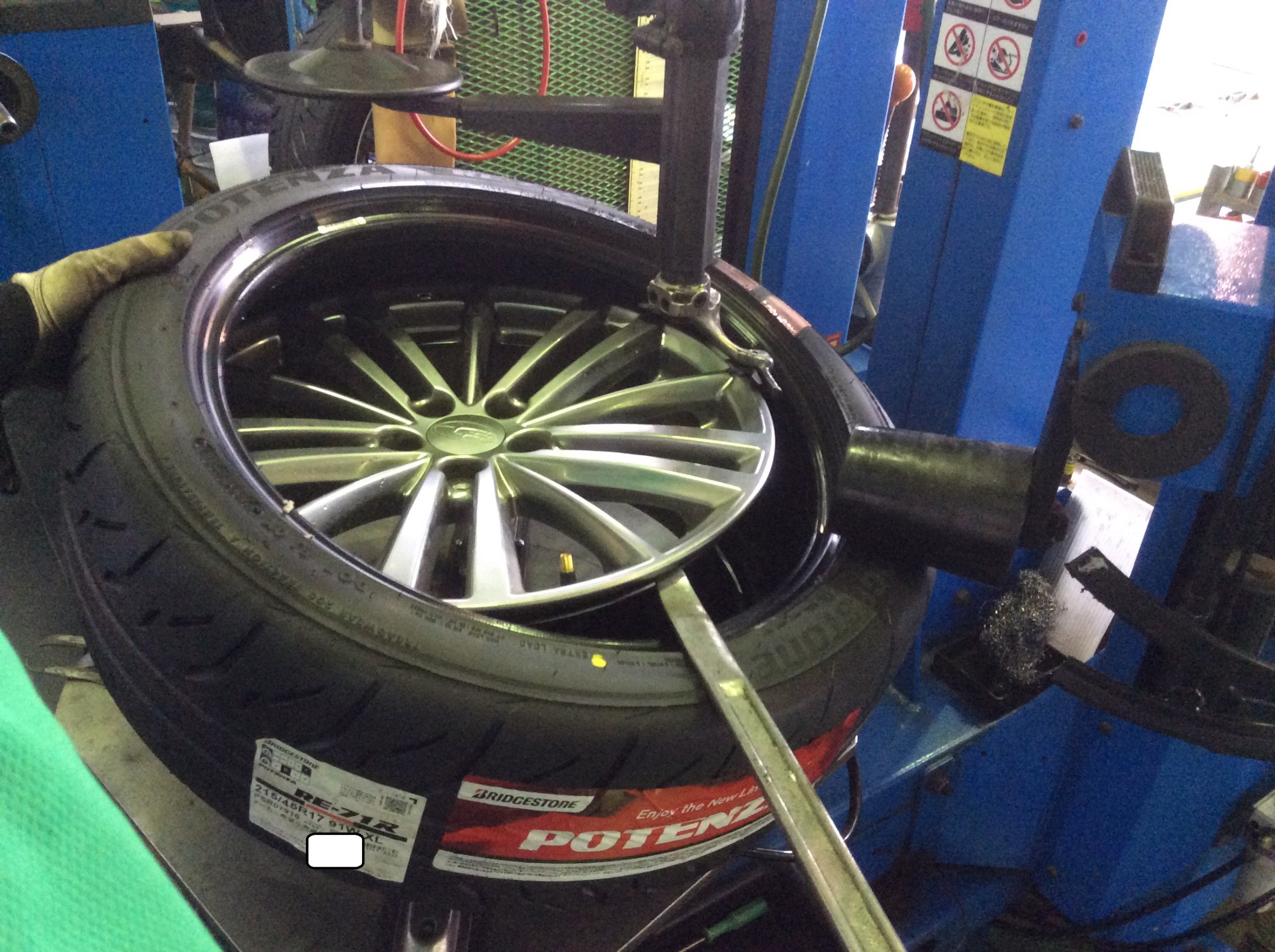 せっかくポテンザなので、タイヤの取り付け角度をきっちり調整して、