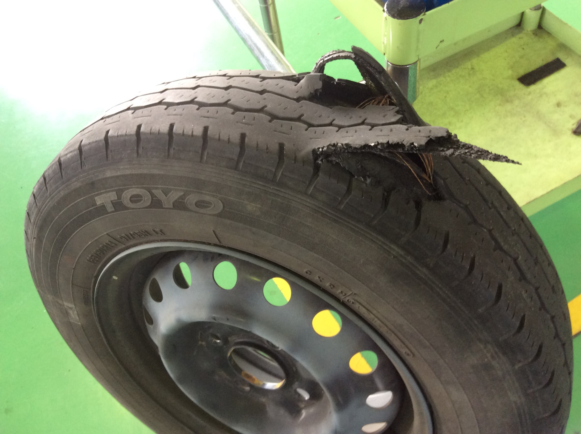さて本日朝一番にNV200バネットさんがタイヤ交換にご来店です!こちらのお車の左後輪がバーストしてしまい.........