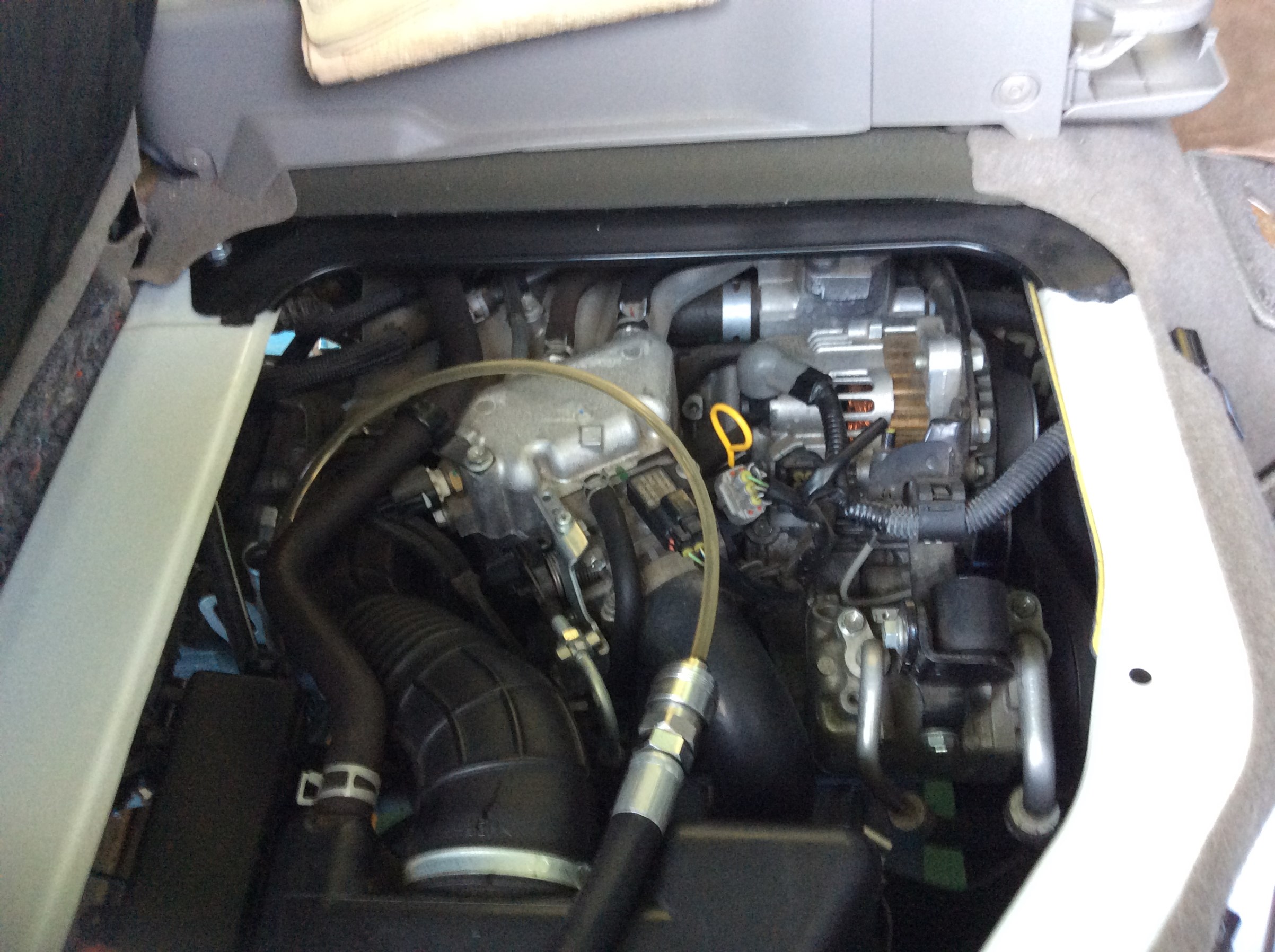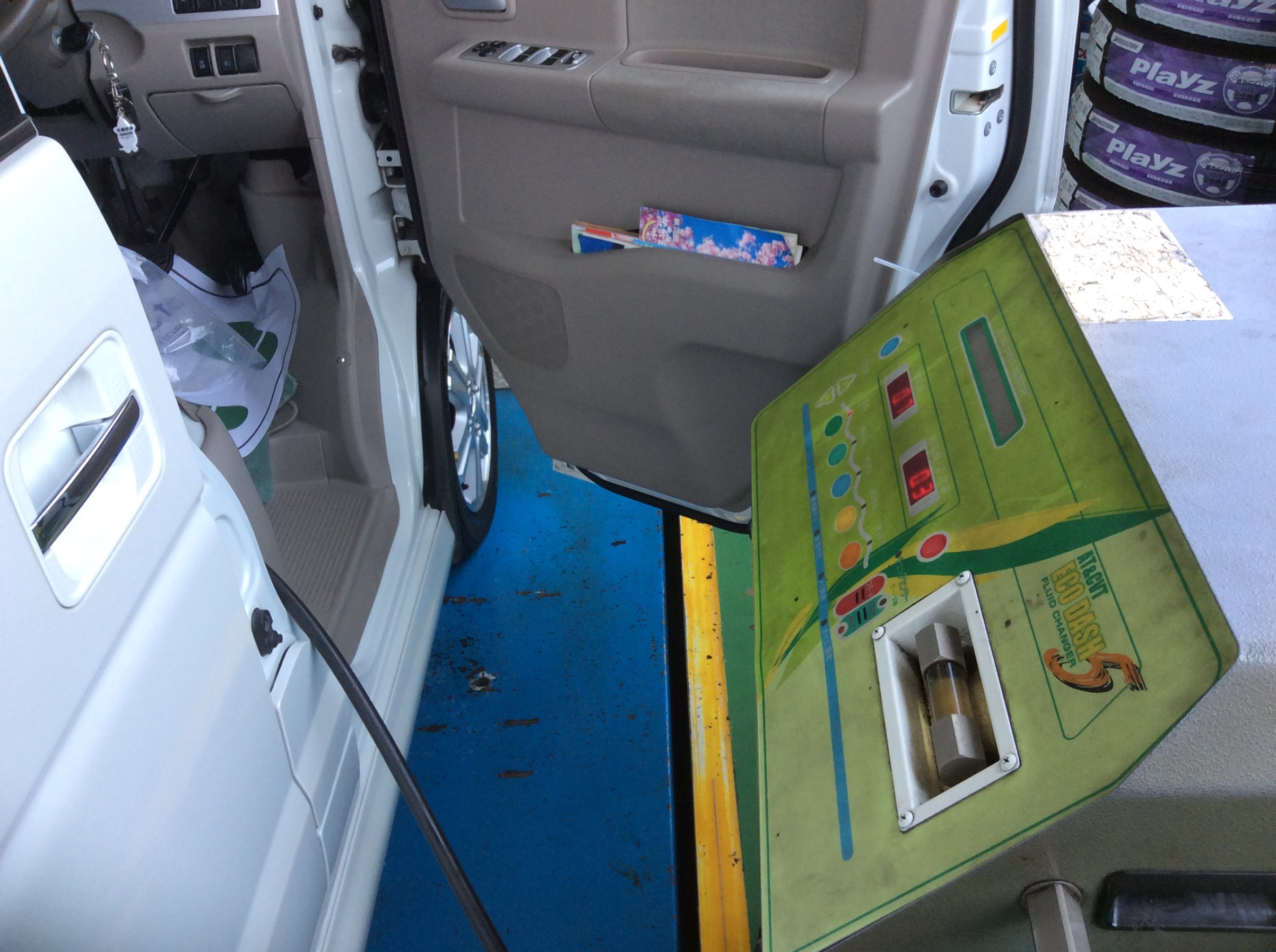 このように専用の機械を使用して交換です。このようにチューブをATFゲージの部分に入れて交換します~